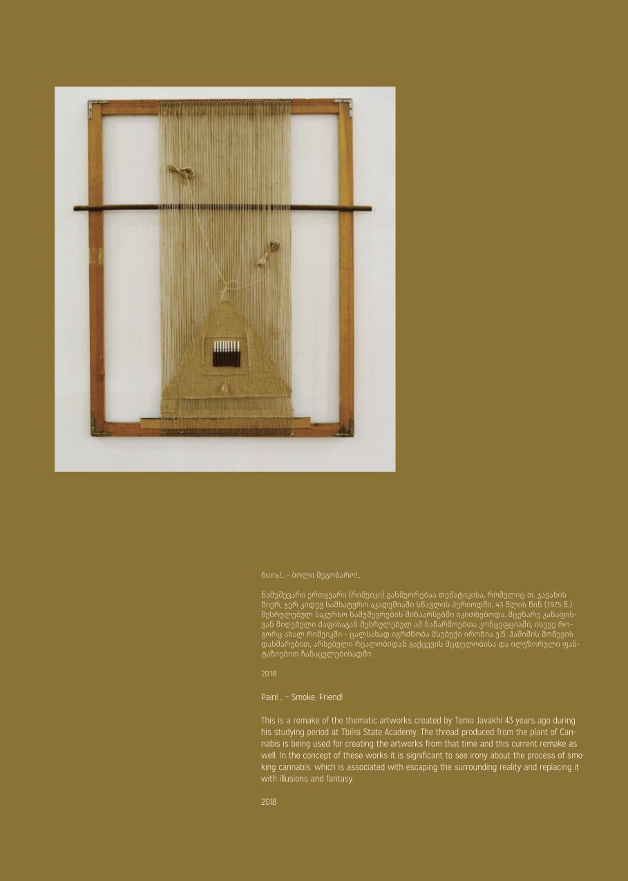 თემო ჯავახი თავის პროექტს რამდენიმე ახალგაზრდა ხელოვანის ნამუშევრებთან ერთად წარმოადგენს. ის თბილისის სამხატვრო აკადემიის პედაგოგია და მისი აზრით, ეს საინტერესო და სასარგებლო იქნება როგორც ახალგაზრდა შემოქმედთათვის, ასევე ქართული თანამედროვე ხელოვნების, კულტურის პოპულარიზაციისთვის.
