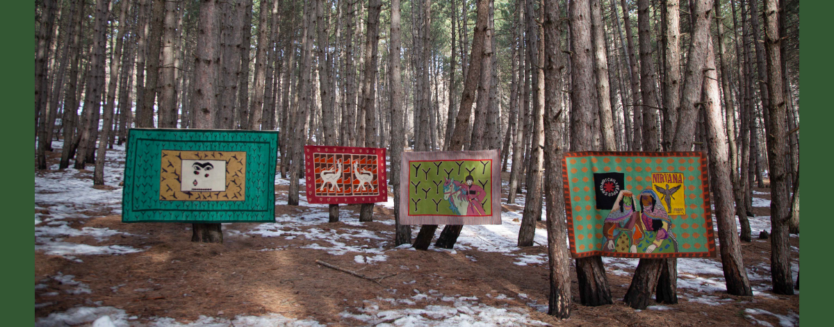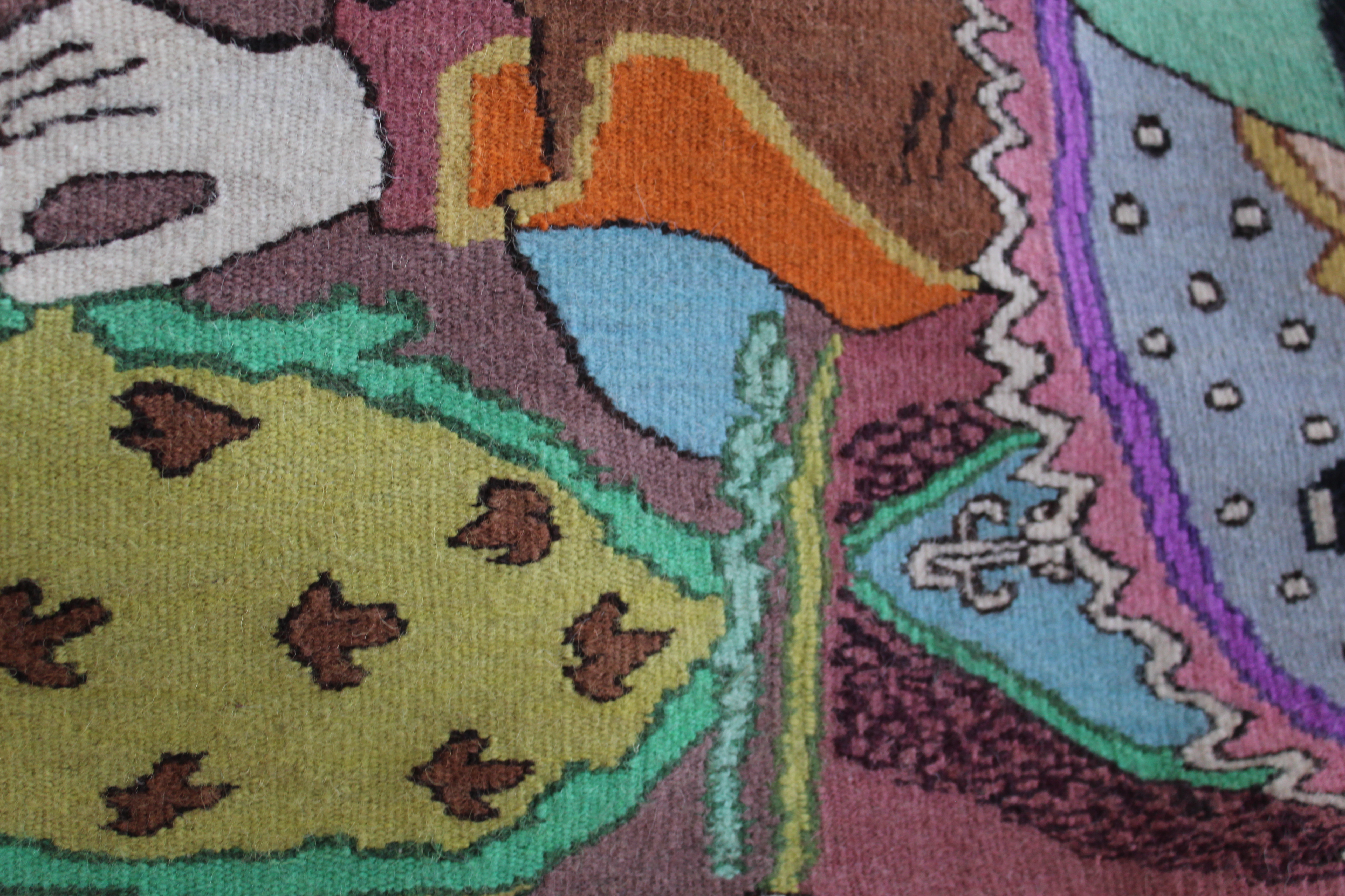 ეს რაც შეეხება ხელობას, ხოლო ვიზუალურად ასე განხორციელდა: სხვადასხვა მხატვრების ნამუშევრები (ამ შემთხვევაში სალომე ჯოხაძის და ანასტასია ახვლედიანის) და ქართული ქსოვილების პატერნები გავაერთიანე და გამოვიყენე ჩემს კომპოზიციებში, რომელიც მერე ფარდაგში გადავიტანეთ.