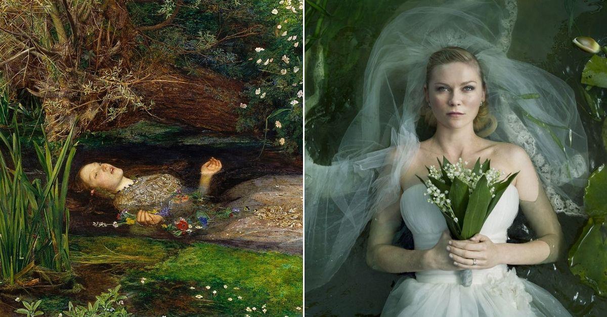 ფოტო ფილმის არსს განსაზღვრავს და იმ მდიდარი მხატვრული პერიოდის ალუზიაა, როდესაც ფერმწერები შემოქმედებაში მელანქოლიის თემას ეხმაურებოდნენ. მსგავს კონცეფციას ვხვდებით ჯონ ევერეტ მილეს შედევრში – “ოფელია”. ის შექსპირის ტრაგედიის, “ჰამლეტის” პერსონაჟს ასახავს. სიმბოლური თეთრი შროშანებით გარშემორტყმული დანსტის პერსონაჟის – ჯასტინის სხეული, ოფელიას მსგავსად, ნაკადს მიჰყვება და არსებულ სამყაროს სცილდება.