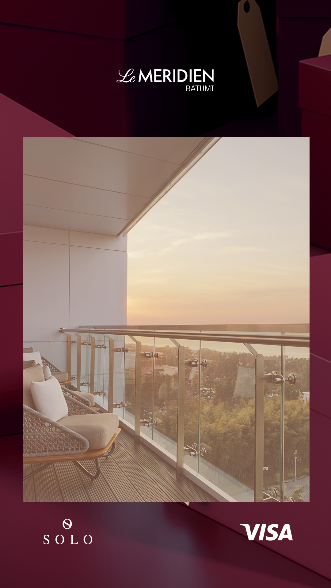 თუკი საყვარელ ადამიანთან ერთად ქალაქიდან გასვლას და დასვენებას გეგმავთ, მაშინ ბათუმის Le Meridien სწორედ თქვენ გელოდებათ.  სასტუმრო Le Meridien, რომელიც ზღვისპირა ქალაქ ბათუმში მდებარეობს, SOLO / VISA ბარათის მფლობელებს ვალენტინობის დღეებთან დაკავშირებით განსაკუთრებულ შეთავაზებას გიმზადებთ: