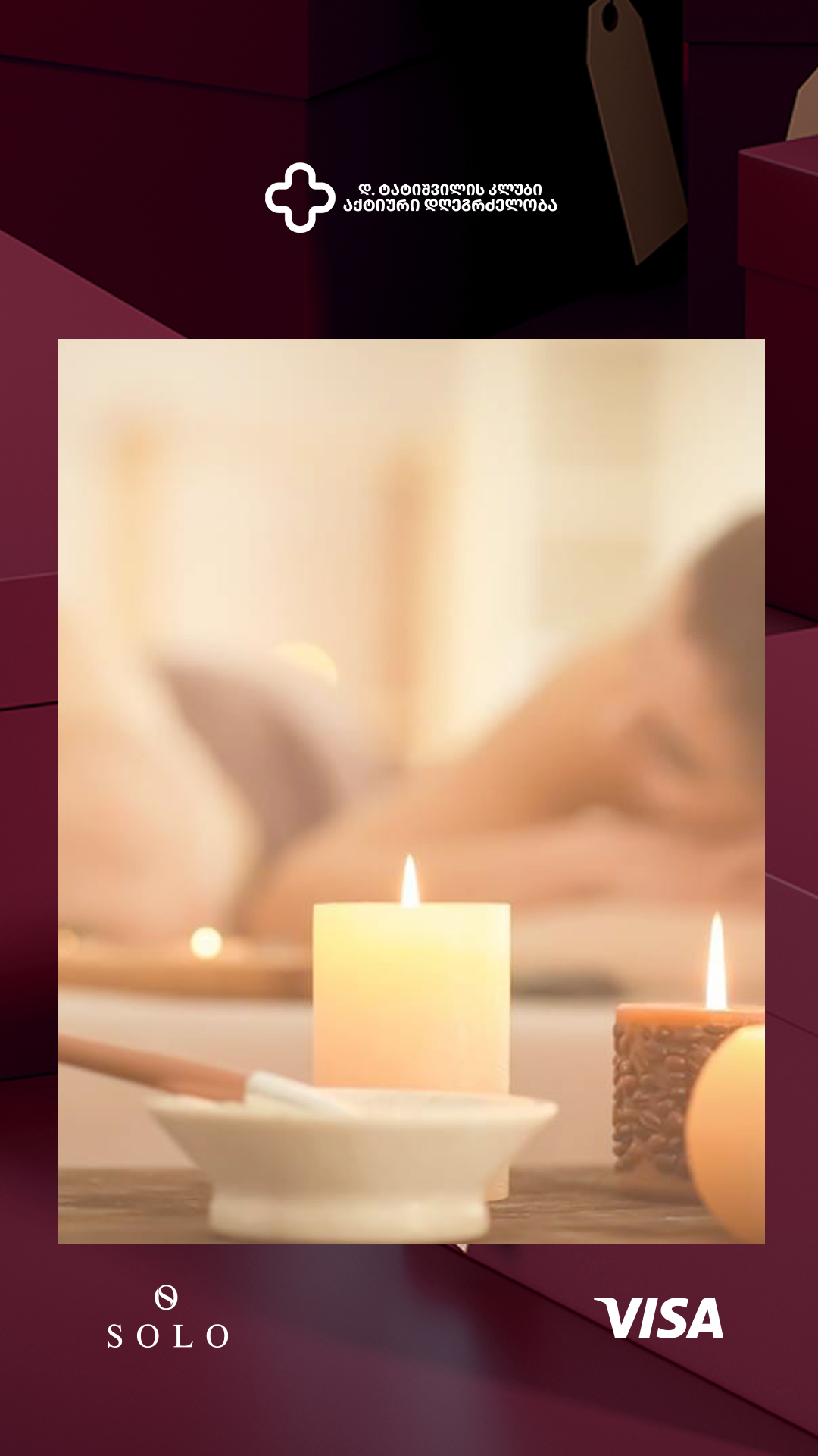 გაუკეთეთ საჩუქარი თქვენს თავს და საყვარელ ადამიანს ვალენტინობის დღესასწაულზე VISA-სთან ერთად! ეწვიეთ ტატიშვილის კლუბს „აქტიური დღეგრძელობა“ და ისარგებლეთ აღდგენით-გამაჯანსაღებელი ინოვაციური სერვისების პაკეტით.