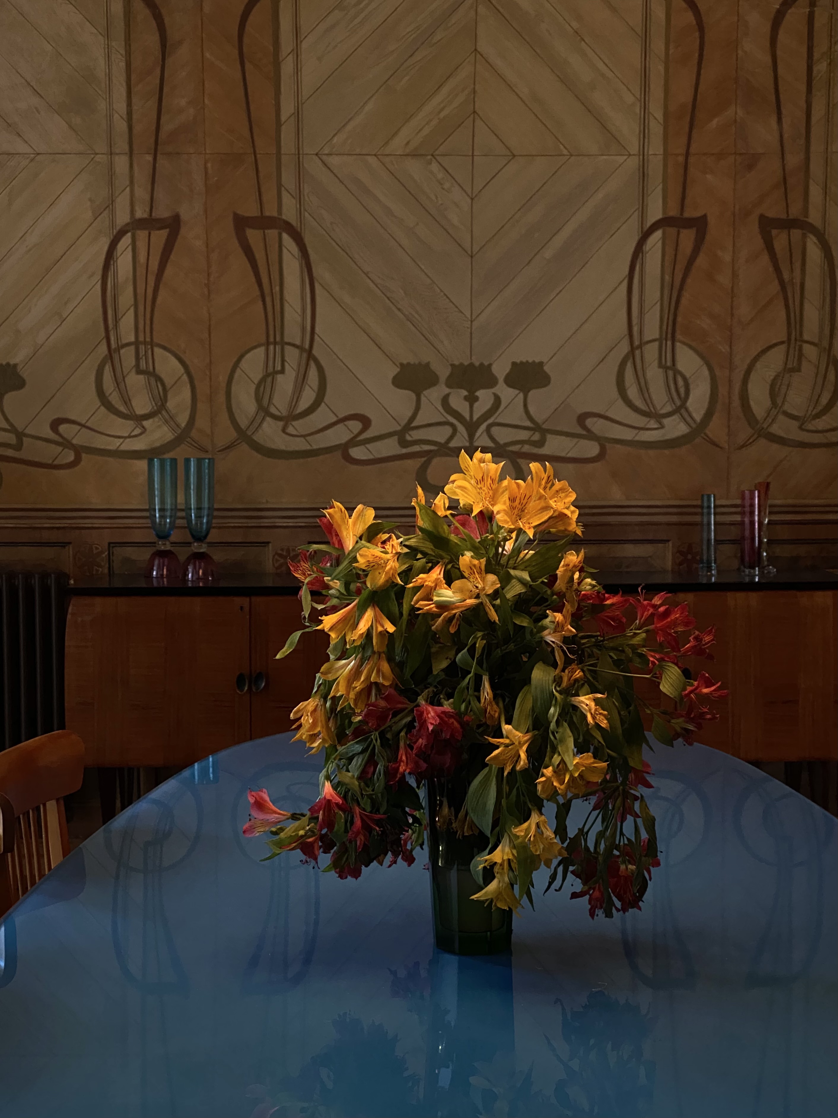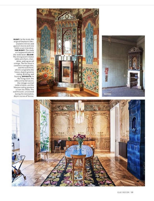 ეკა: რესტავრაცია საკმაოდ კომპლექსური პროცესია, განსაკუთრებით რთულია ასეთი სამუშაოს ორკესტრირება სარემონტო სამუშაოებთან სინთეზში. კედლის მხატვრობაზე იმუშავა ლელა ნინოშვილმა, რომელიც ჭეშმარიტი პროფესიონალია. აღმოჩენას რაც შეეხება, სიურპრიზი იყო სასადილო ოთახის მხატვრობა, მისი უნიკალური პერსონაჟებით, ჯუჯებით, რომლებიც საოცრად კეთილგანწყობილნი აღმოჩნდნენ☺ ასევე თაღი, რომელიც ორ ოთახს შორის, კედელში ჩაშენებული ვიპოვეთ. მგონია, რომ ეს ელემენტი ბინას გვიან შეემატა; მაგრამ ახლა საკმაოდ საინტერესო ნაწილია მისი ინტერიერის, რკინის გამყოფითვე, რომელიც ჩემი დიზაინით რატი ერაძემ შეასრულა.