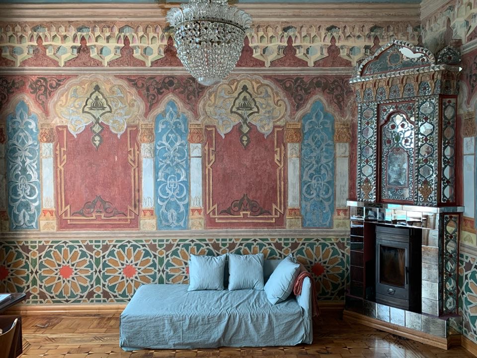 მრავალმა გამოცვლილმა მეპატრონემ, ეპოქამ, თავისი წვლილი შეიტანა მის გადაგვარებაში. კედლის მხატვრობის თითქმის სრული ნაწილი აბსოლუტურად დაფარული იყო სხვადასხვა სამშენებლო მასალით. საფარის ქვეშ ინტერიერის გეგმარება სრულად იყო დარღვეული, რამდენიმე გასასვლელი კარი ამოშენებული აგურით, თაღი მოქცეული კედლებს შორის, დამატებული და ჩაშენებული ოთახები ოთახებშივე და ასე შემდეგ… როდესაც დავიწყე ინტერიერზე მუშაობა, განცდა იმისა, რომ უფრო მნიშვნელოვანს აღმოვაჩენდი რაიმეს, არ მქონია, თუმცა მაშინაც ვფიქრობდი, რომ კედლის მხატვრობის გარეშეც უნიკალური იყო ეს ინტერიერი. კედლის მხატვრობა მისი უდიდესი ბონუსი აღმოჩნდა.