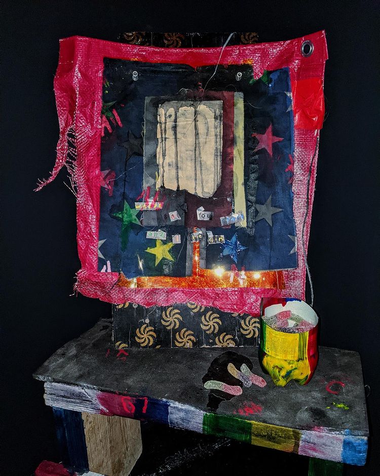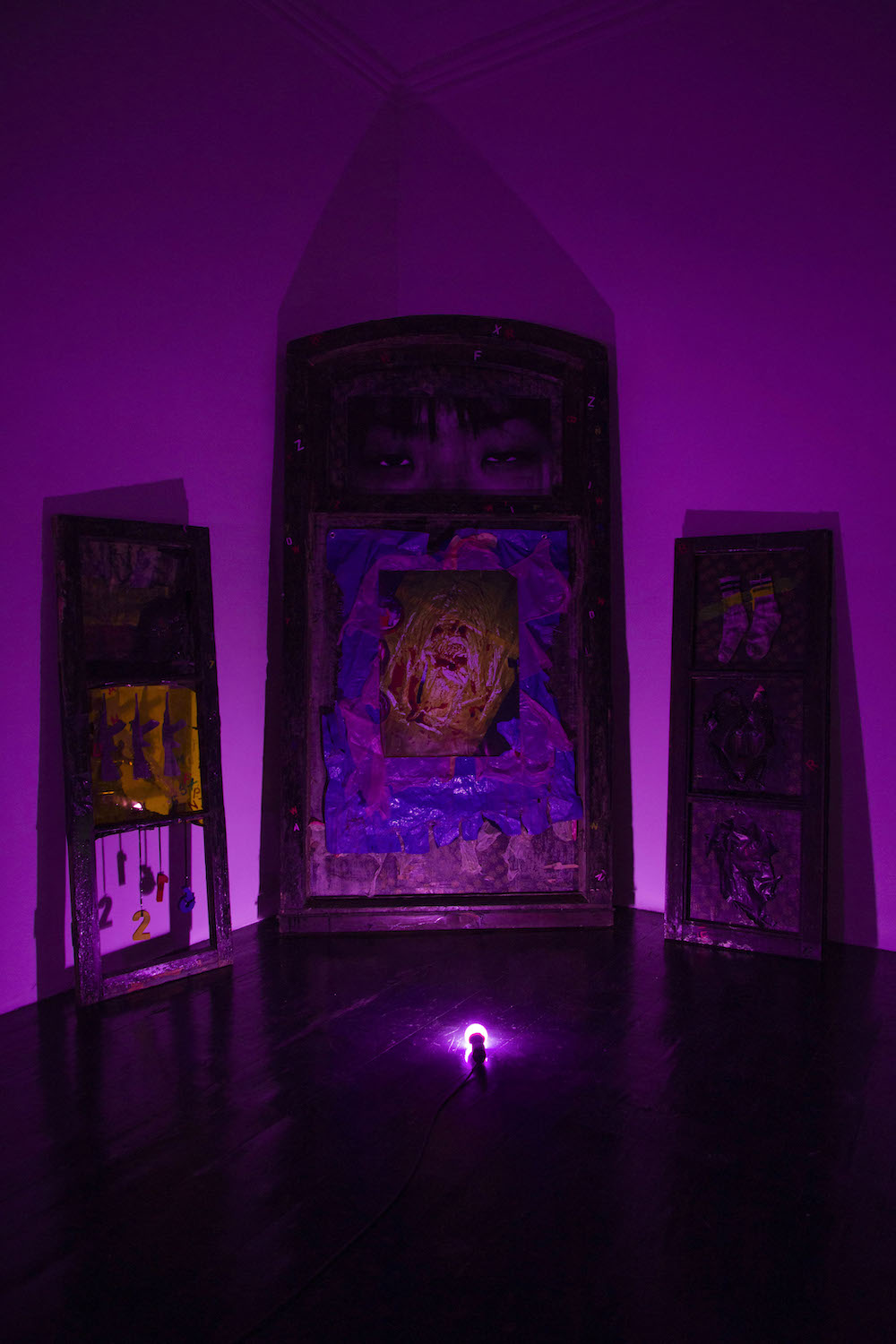 ფილმის გვერდით განთავსებულია პატარა საკურთხეველი შეღებილი გამოფენის – წითელი, ლურჯი, მწვანე და შავი – ფერებით, სადაც ჩაქსოვილია ტრადიციული, კორეული, შამანისტური პრაქტიკა: კედელზე ჩამოკიდებული შამანის პერანგი მოხატულია საკურთხევლის ფერებში. ამერიკის დროშის შეღებილი გრძელი ზოლები ჩამოკიდებულია მკლავებზე. შამანები ამ სპეციფიკურ ფერებს იყენებდნენ ქაოსისა და გათავისუფლების ჟინის გასაღვიძებლად, მჩაგვრელი ძალების განდევნისას. გახსნილი ელვის მეშვეობით კი ვხედავთ ელდრიჯ კლეივერის (შავი პანტერას ერთ-ერთი დამაარსებელი) სახე ჩაშენებულია ღმერთის ტრადიციულ კორეულ შამანისტურ ნახატში. შამანური ღვთაებები კი დროის ცვლილებასთან ერთად მუდმივად იცვლიდნენ სახეს. ეს ნახატები აღიქმება არა როგორც ღმერთების გამოსახულება, არამედ როგორც თავად ღმერთის განსახიერება.