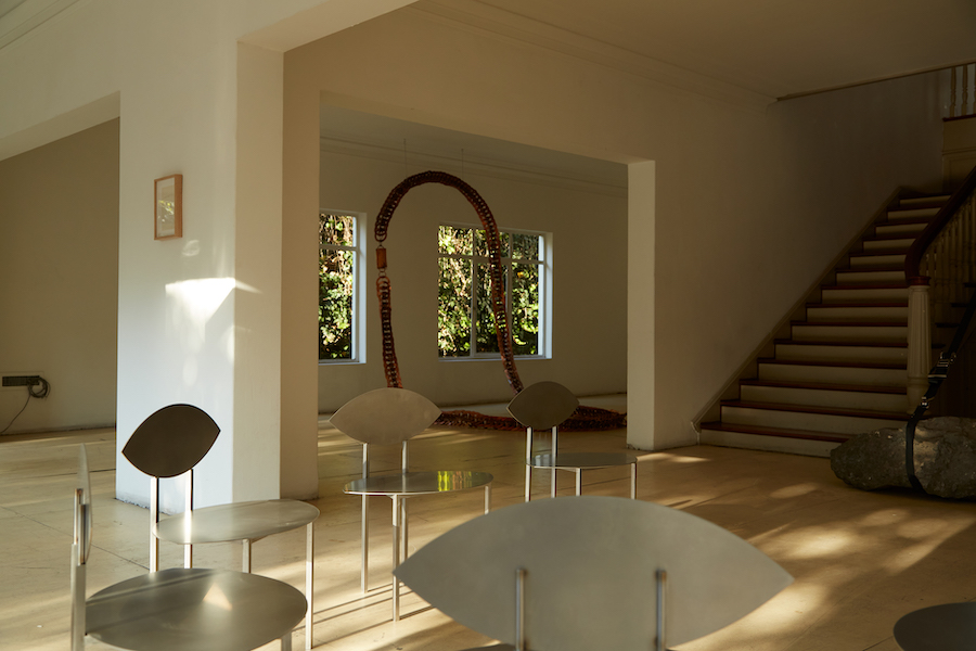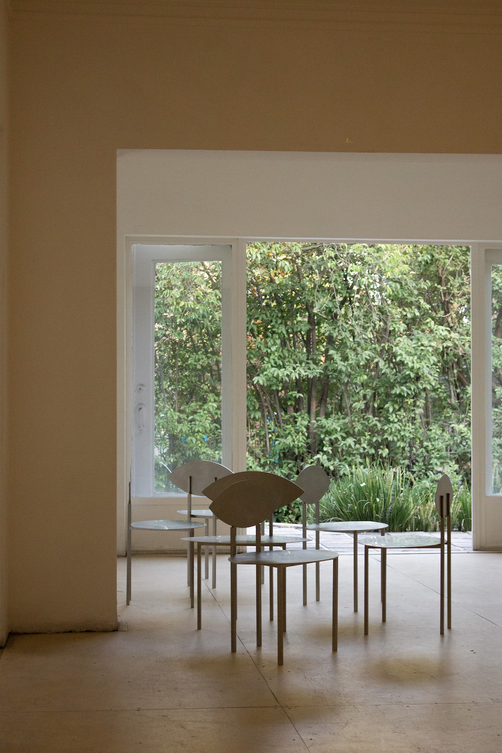 გამოფენისთვის, ჩვენი დიზაინით შექმნილი 15 ცალი სკამი – თვალი დამზადდა მექსიკაში, რომელიც მიმოფანტულია „უკანასკნელი ბინადრის“ სახლში. უჟანგავი ფოლადის სკამი თავისი სიმარტივით და გეომეტრიულობით გამოირჩევა. ჩვენი ობიექტის თვალის ფორმა, სიმბოლურად ეხმიანება უკანასკნელი ბინადარის ცხოვრებას, რომლის მთელი დრო ნივთებზე აუღელვებლად დაკვირვების პროცესი იყო.