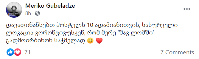 „შემიძლია ვუმასპინძლო 4-5 ადამიანს სოლოლაკში…“