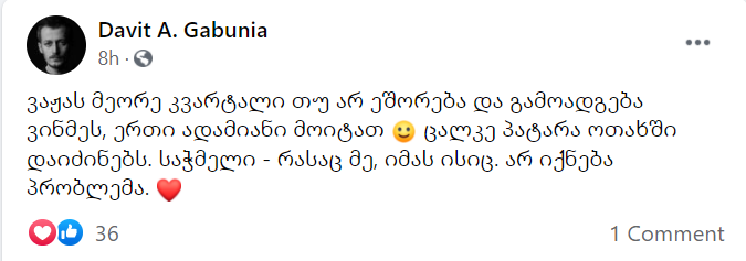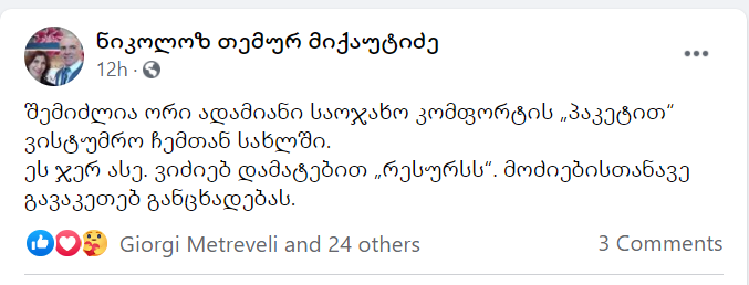 „სიამოვნებით ვუმასპინძლებ აქციაზე ჩამოსულ 2 თანამოაზრეს…“