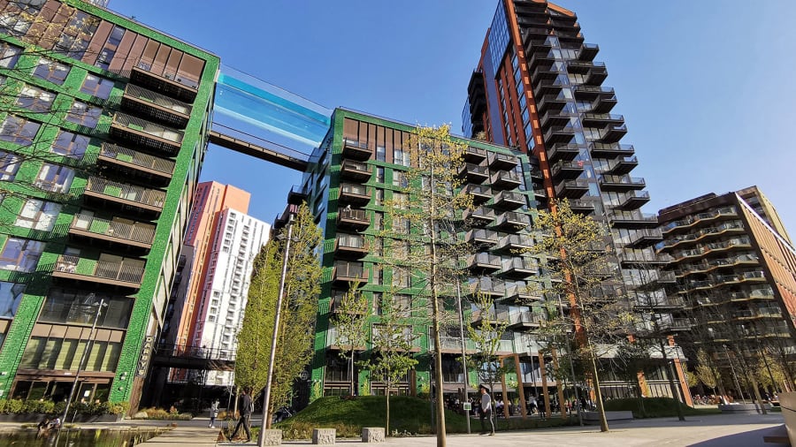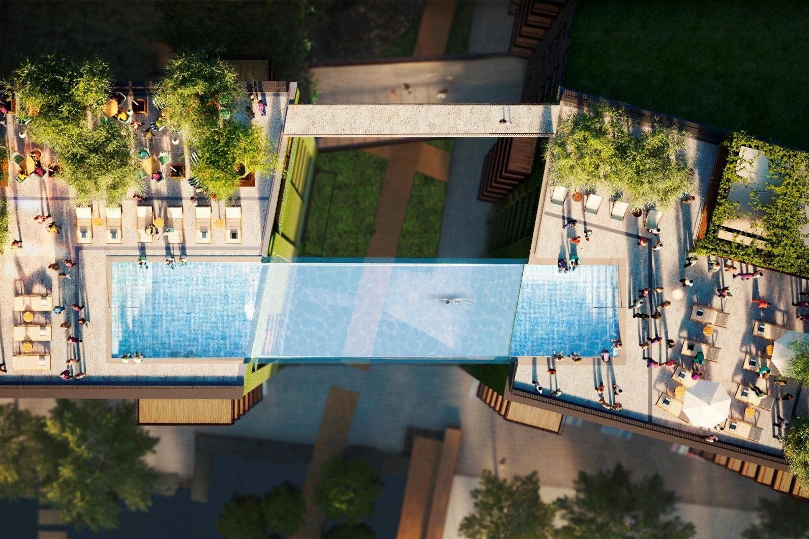 მიუხედავად ამ ყველაფრისა, ათიოდე წლის წინ, ზაფხულის ერთ თბილ შუადღეს, Ballymore-ის შემოქმედებითმა ხელმძღვანელობამ გააცნობიერა, რომ ამ შესანიშნავ კომპლექსს ერთი მნიშვნელოვანი დეტალი აკლდა – გარე საცურაო აუზი, რომლითაც მცხოვრებლები და მათი სტუმრები შეძლებდნენ ზაფხულის ცხელ დღეებში სარგებლობას. აუზისთვის ერთადერთი ლოგიკური ადგილი ისევ სახურავი  იყო, მაგრამ შესაბამისი  ადგილი ვერ მოიძებნა, ამიტომ მათ გადაწყვიტეს აეშენებინათ მსოფლიოში პირველი საჰაერო აუზი, რომელსაც შესაფერისი სახელი – Sky Pool დაარქვეს.