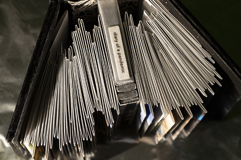 გამოფენის ექსპოზიციის ნაწილი სწორედ დაროს დღიურია, რომელიც წიგნი აკორდეონის ნაკეცებადაა აკინძული 11 მეტრის სიგრძეზე, უწყვეტი პანდემიის გაუთავებელი დღეების ნიშნად.