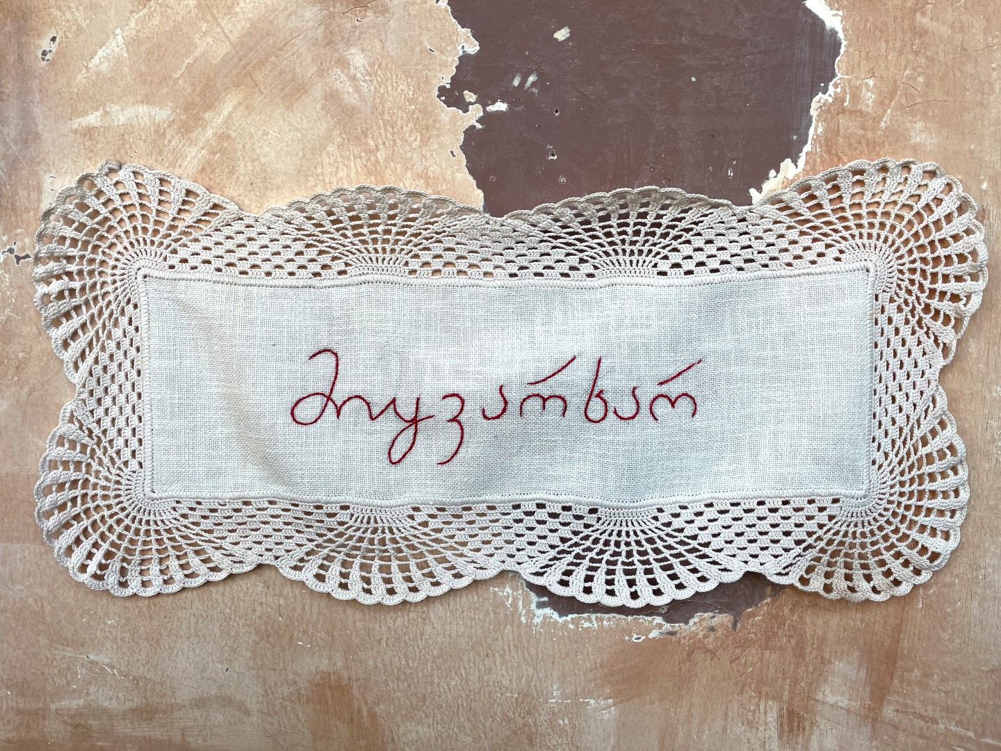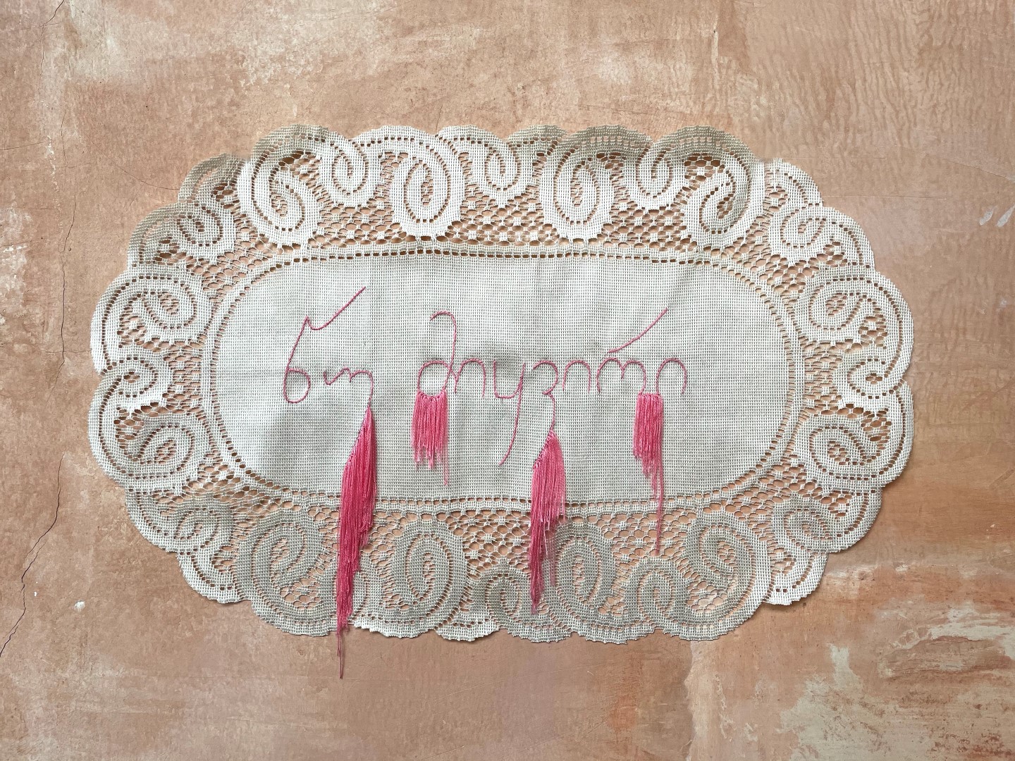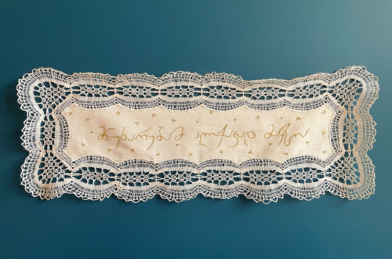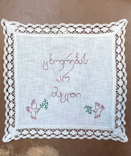 ძალიან უცნაურია, მაგრამ პირველი სიტყვა, რომელიც ამოვქარგე, იყო “მიყვარხარ”, შემდეგ უკვე ემოციურად მივყვები. ზოგი სიტყვა და ფრაზა გადადებული მაქვს და ვიცი, რომ დრო მჭირდება ყველაფრის ქსოვილზე გადმოსატანად. საბოლოოდ, ალბათ ყველაფერი ამოიქარგება, ყველაფერი, რისი თქმაც მსურს. წინასწარ არასდროს ვარჩევ, თითქოს თავად სიტყვები მიკარნახებენ – ახლა ვისი ჯერია