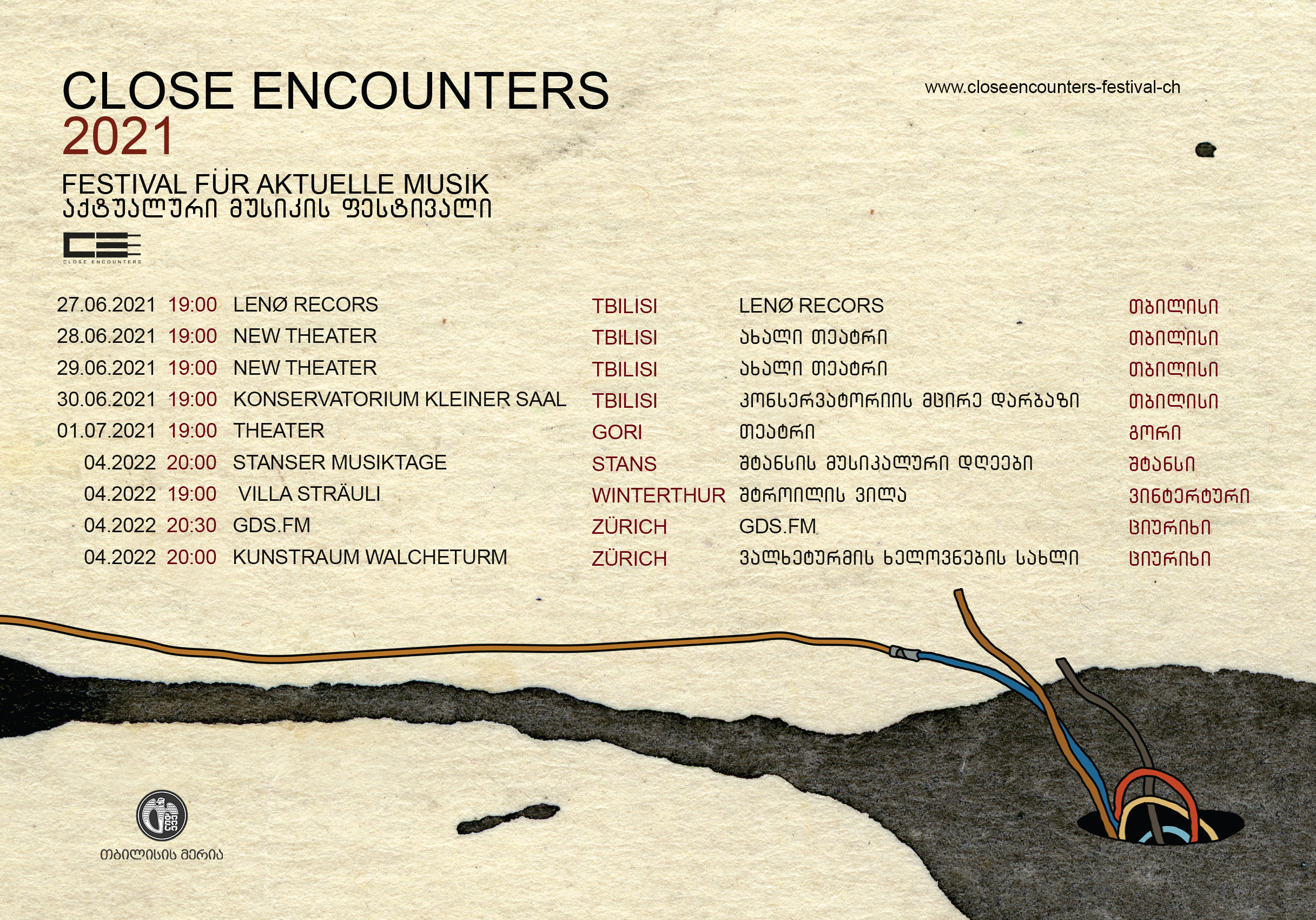 Close Encounters-ის მთავარი დანიშნულებაც ამაში გამოიხატება – ერთმანეთთან დააკავშიროს ისეთი შემოქმედებითი ხაზები, რომელთა ერთობა ქმნის რაღაც ახალს და საინტერესოს. ღონისძიებათა სერია, რომლის მთავარი მიზანი საქართველოს და შვეიცარიის მუსიკალურ სამყაროებს შორის ნაყოფიერი დიალოგის პროცესის პროვოცირება იყო, 27 ივნისს თბილისში ფიზიკური ღონისძიებების ფორმით ბრუნდება.