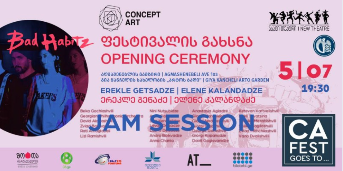5 ივლისს 19:30 საათზე არტოს ბაღში ფესტივალის ყველა მონაწილე შეიკრიბება, საღამოზე მოსულ ადამიანებს დაუვიწყარი Jam Session და სიურპრიზები ელოდებათ. ასევე შედგება ერეკლე გეწაძისა და ელენე კალანდაძის პროექტის Bad Habitz პრემიერა.