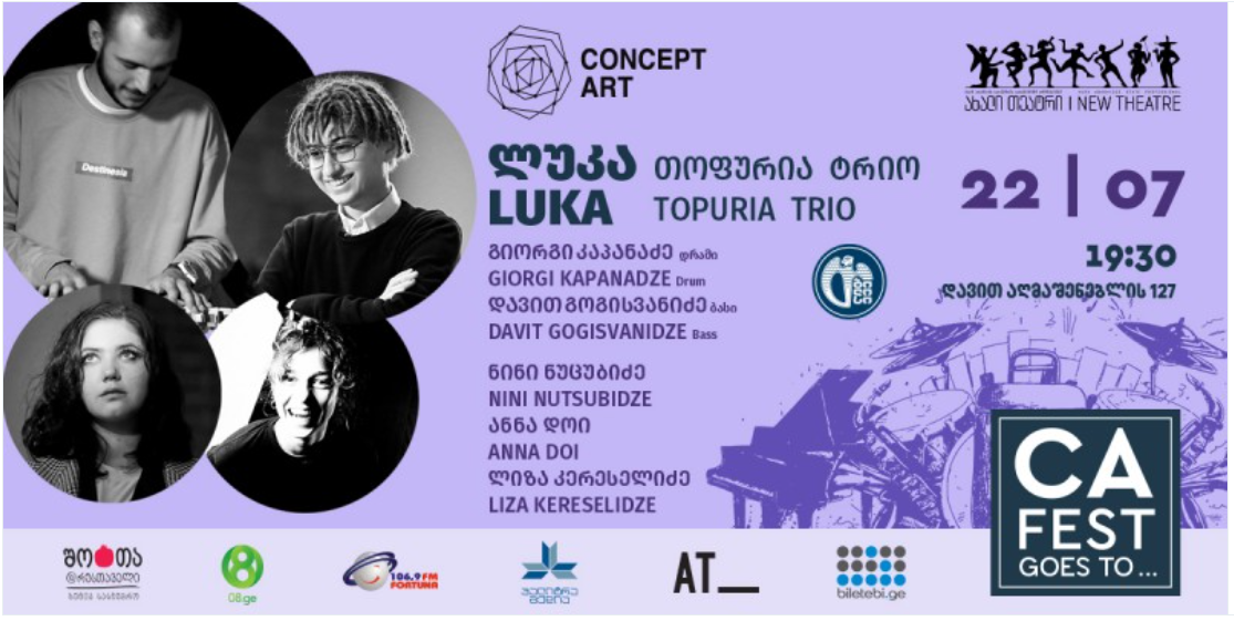 22 ივლისი მთლიანად ახალ თაობას დაეთმობა, ლუკა თოფურიასთან ერთად საპრემიერო პროექტს წარმოადგენენ ნინი ნუცუბიძე, ანნა დოი და ლიზი კერესელიძე. „ახალ თეატრში“ CA Goes To საზაფხულო სეზონს დავით ალადაშვილი და ლიზი რამიშვილი დახურავენ.