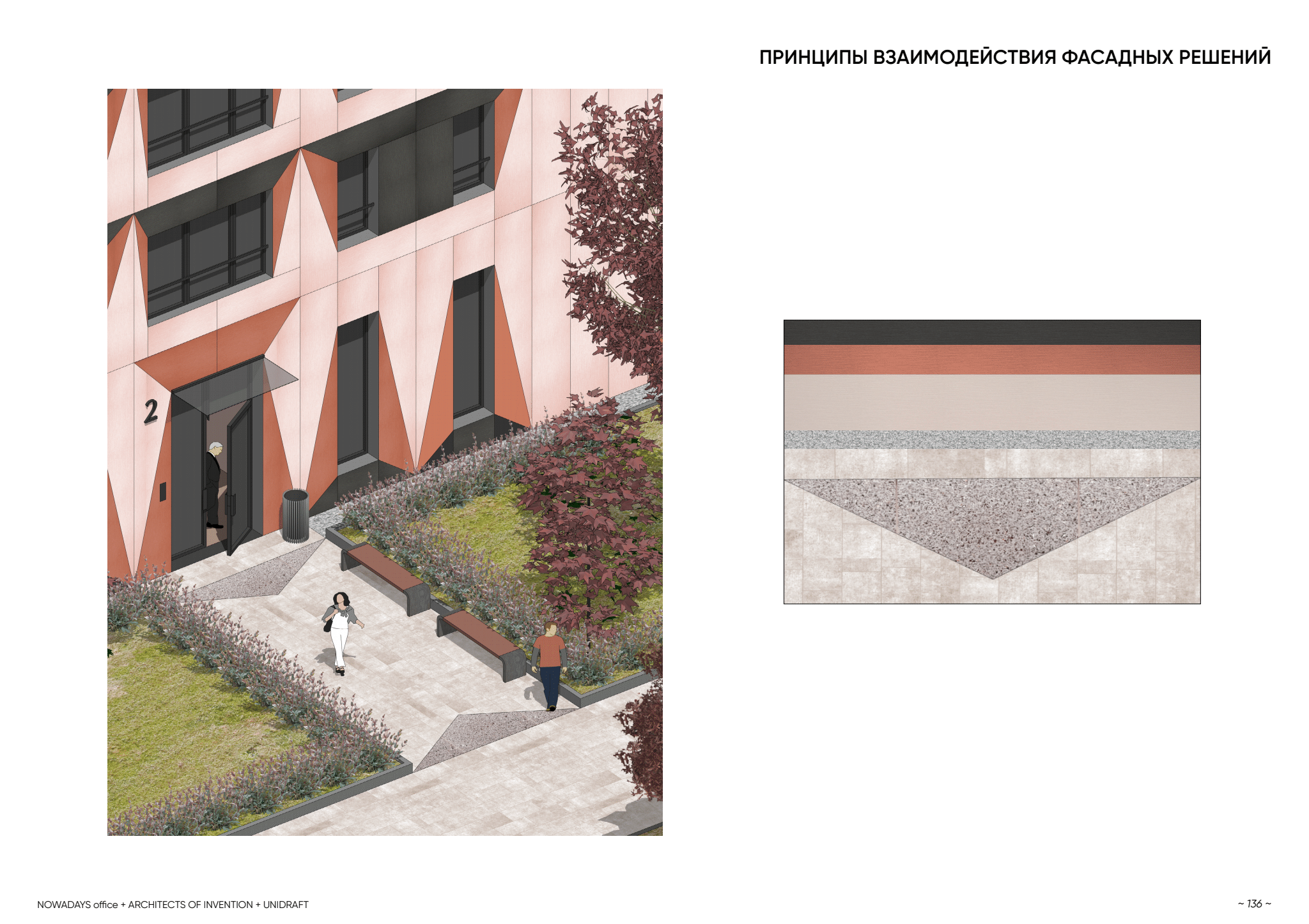 ჩვენ შევისწავლეთ კონკრეტული რაიონების ხასიათი, როგორი ტიპოლოგიური შენობები იყო გამოკვეთილი და ამის მიხედვით დავიწყეთ არქიტექტურული ფორმების ძებნა. რაც შეეხება შთაგონებას, ეს ბაუჰაუსის სკოლა, მალევიჩის მხატვრობა და 20-იანი წლების რუსული სკოლა ვხუტემასი გახლავთ,  ეს უკანასკნელი ტოტალური დიზაინის შექმნას გულისხმობს (სამყაროების შექმნა დიზაინის საშუალებით) – სახლიდან დაწყებული, სახელურის დიზაინით დამთავრებული. რაც შეეხება მიმდინარეობას, მაგალითისთვის ავიღეთ არქეტიპული გეომეტრიული ფორმები – წრე, კვადრატი, მართკუთხედი და ამ ფორმების საშუალებით შევქმენით ფასადის დიზაინი.