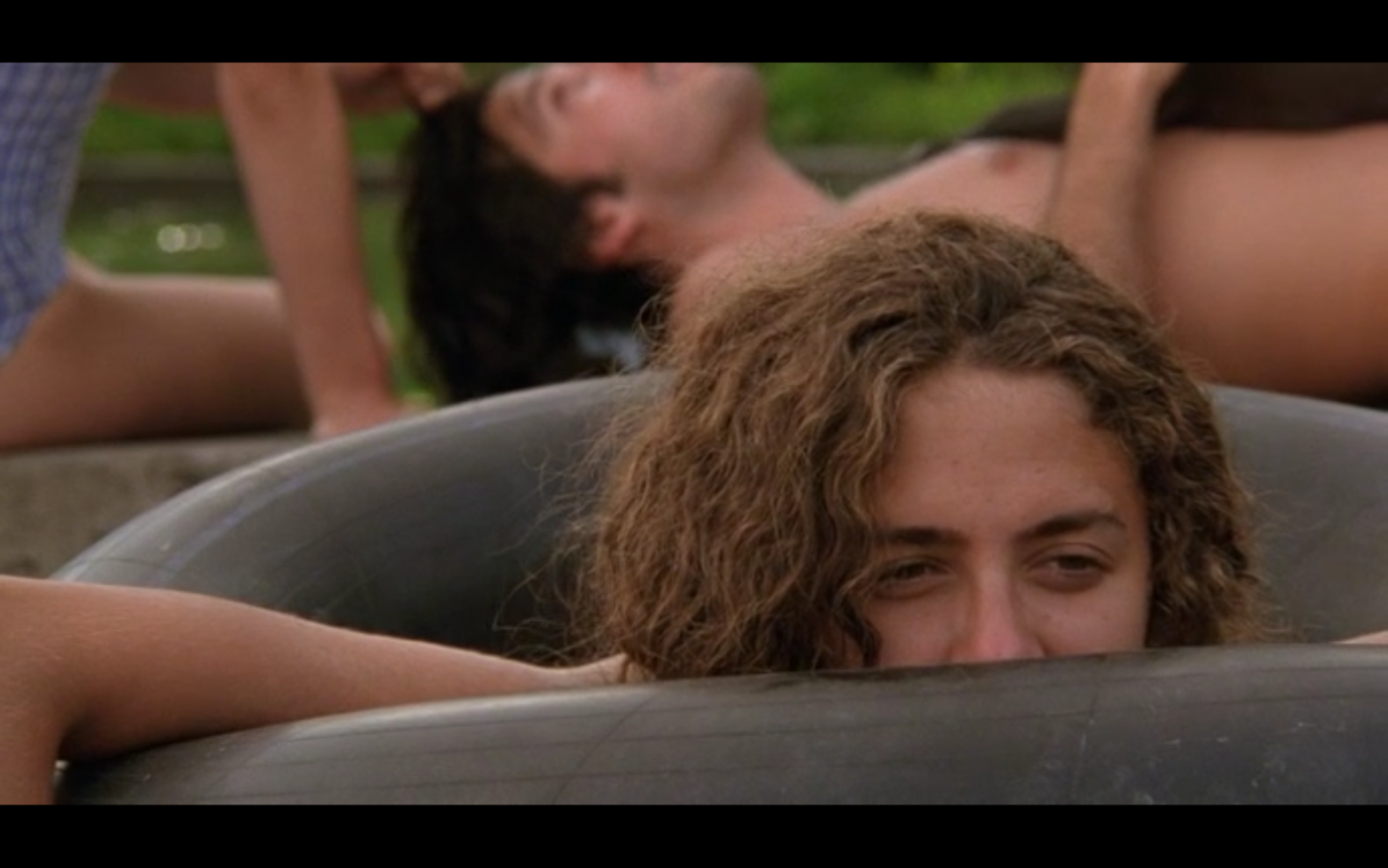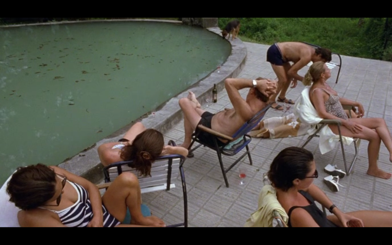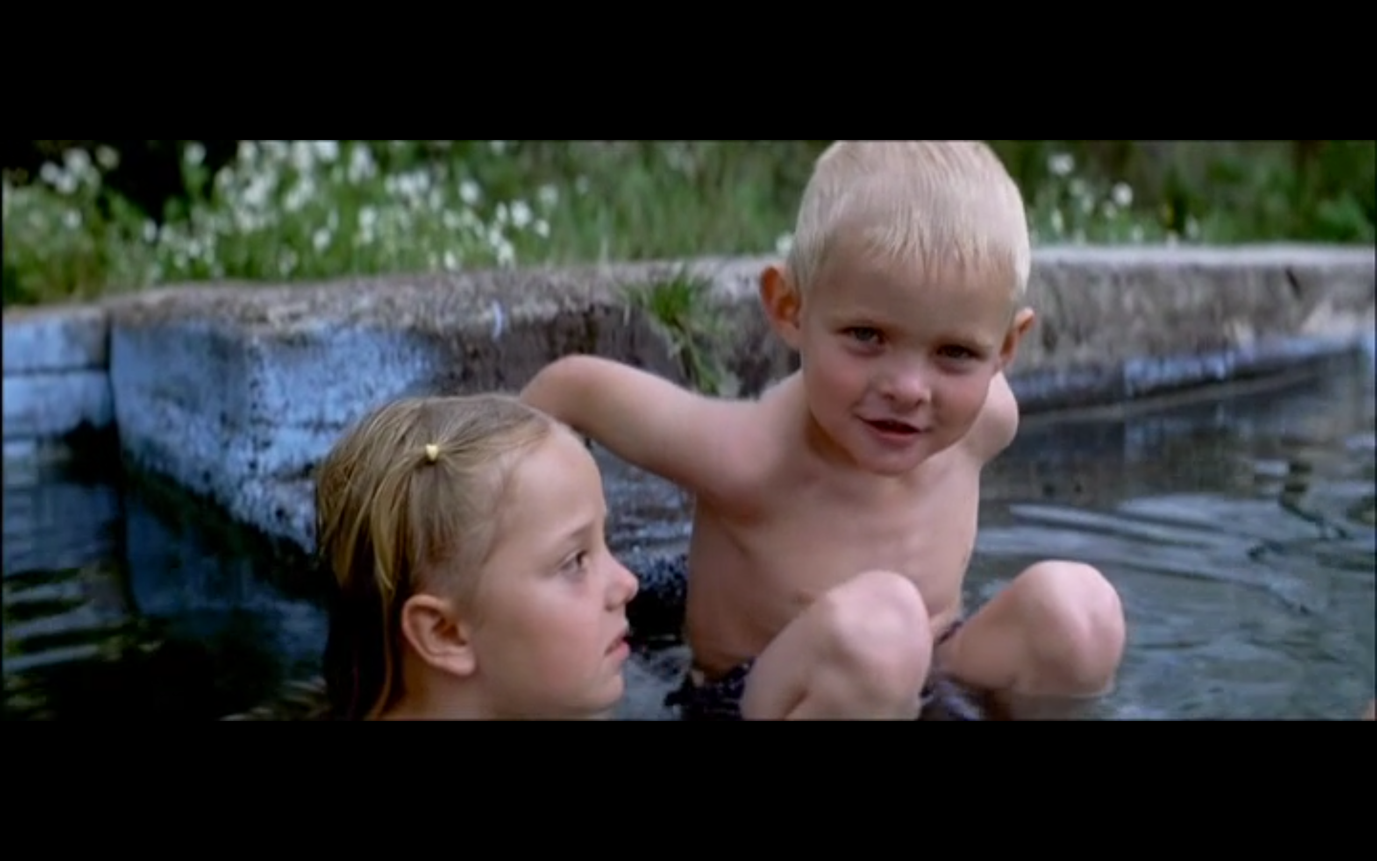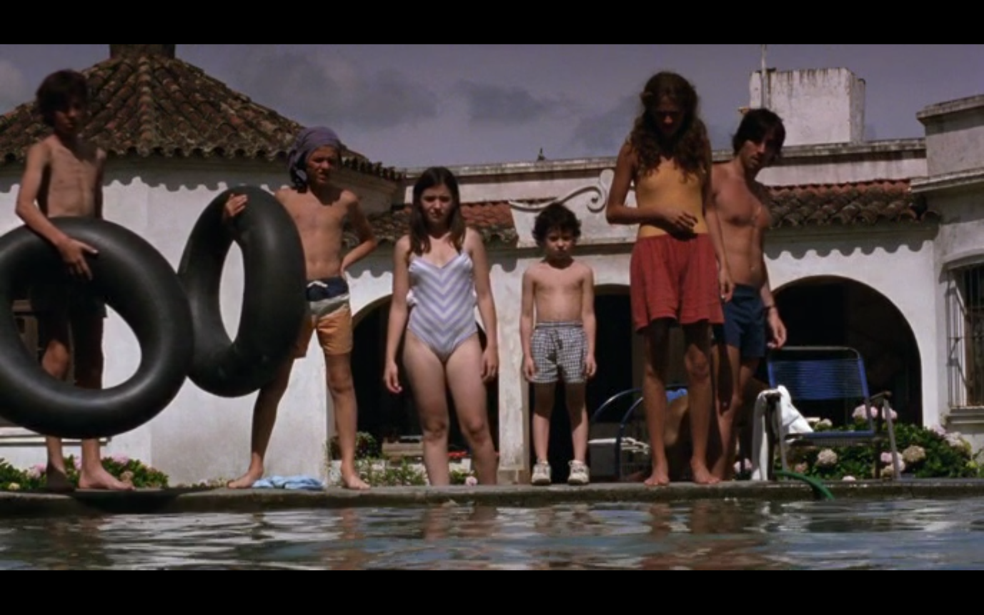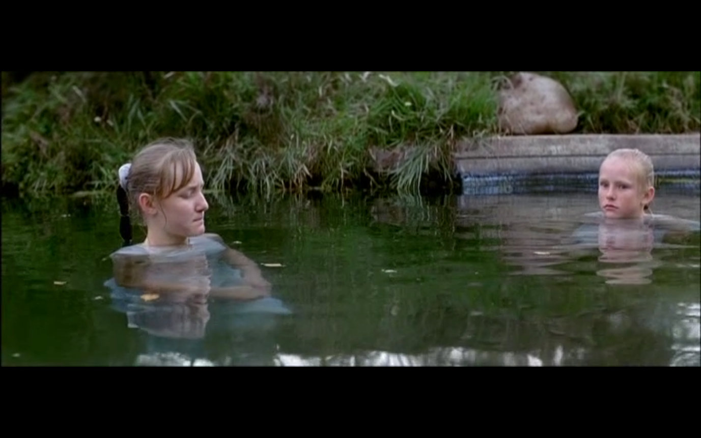 მაგალითად, აუზის სცენაში, სადაც ფილმის ერთ-ერთი გმირი მომი წყალში ხტება, ბავშვები აუზის კიდესთან მიდიან, მაგრამ ბლანტ წყალში ვერაფერს ხედავენ. დრო გადის და კადრი ჯერ კიდევ წყლის უმოძრაო ზედაპირზეა კონცენტრირებული. შემდეგ დროში ჩავარდნაა და ვხედავთ აუზთან მოკალათებულ ბავშვებს, რომლებიც ისტორიებს ჰყვებიან, მაყურებელს საკუთარ ცნობიერებაში გარკვეული დრო სჭირდება იმის გასააზრებლად, რომ მომიც იქაა, რადგან თავდაპირველად ის კადრს მიღმა იმყოფებოდა.
