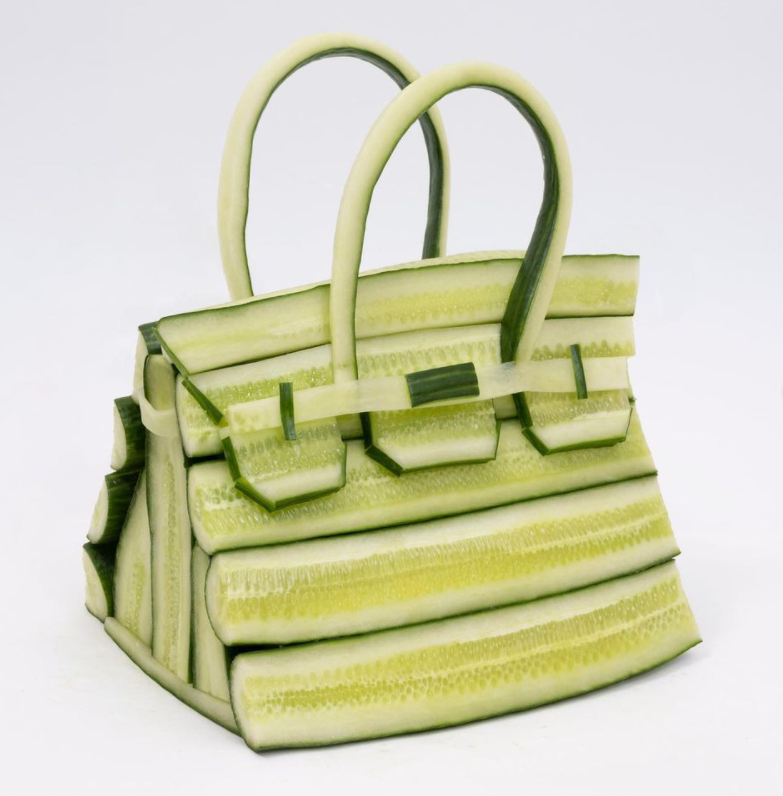 საინტერესოა წინა კვირაში ჰერმესის მიერ გამოქვეყნებული ახალი კამპანიის ფოტოები, რომელზეც არტისტი ბენ დენზერნის მიერ სატაცურისა და კიტრისგან შექმილ ბირკინის ჩანთებს ვხედავთ.