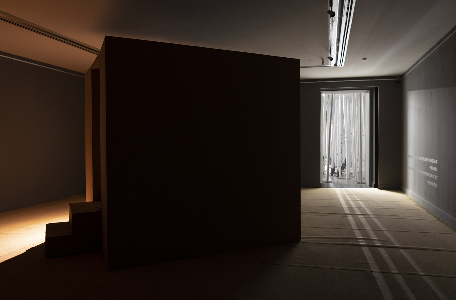 მეორე დარბაზში გადასვლით სიბნელეში შევაბიჯებთ, სადაც ჟანგბადის კონცენტრატორის აპარატის ხმა ისმის. სივრცის ცენტრში მდებარე კუბი ოთახის კედლების კუთხეების გასწვრივაა მობრუნებული. მისი შიგთავსის აღმოსაჩენად დამთვალიერებელმა კუბს წრე უნდა დაარტყას და მიჰყვეს ხმას და სინათლის წყაროს. კუბის ცენტრში, ღრმა და შემაძრწუნებელ ორმოსთან პირისპირ მდგარი დამთვალიერებელი იძულებულია შუშაზე დადგეს, რათა საკუთარი ანარეკლის “გავლით” მასში ჩაიხედოს. ხელოვანი კიდევ ერთხელ აქცევს მას შინაგანი მზერის წინაშე და ცნობიერ მდგომარეობასა და ქვეცნობიერ ფიქრებს შორის გამართულ თამაშს გვთავაზობს. ის ცდილობს, კიდევ ერთხელ გაიაზროს მზერის საშუალებით სამყაროს მუდმივი განსაზღვრისა და ხელახლა აღქმის შესაძლებლობა.