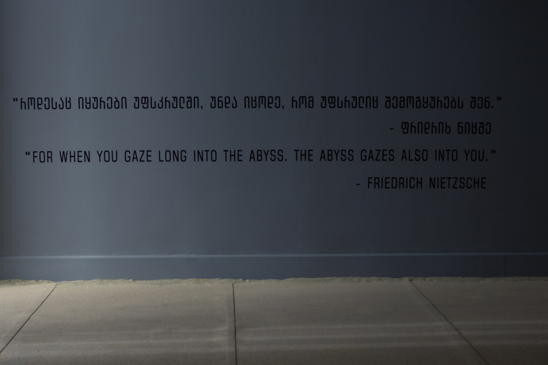 მზერით უსასრულო სიბნელესთან კავშირი  ფრიდრიხ ნიცშეს ცნობილი მეტაფორის   ასოციაციას იწვევს: “როდესაც იყურები უფსკრულში, უნდა იცოდე, რომ უფსკრულიც შემოგყურებს შენ”, და ერთდროულად აზიარებს და იხსენებს მოგზაურობის ბნელ მხარეს. გამომდინარე იქიდან, რომ ის მხოლოდ ერთ ადამიანს იტევს, მნახველისთვის ინტიმურ, მარტოობის მომენტს ქმნის, რომელიც თვითრეფლექსიისკენ უბიძგებს და უსასრულო სიბნელეში ითრევს. ჟანგბადის აპარატის ხმა მზერისა და ამ ინტიმური მომენტის თანმხლებ ბუნებრივ ფონად იქცევა.