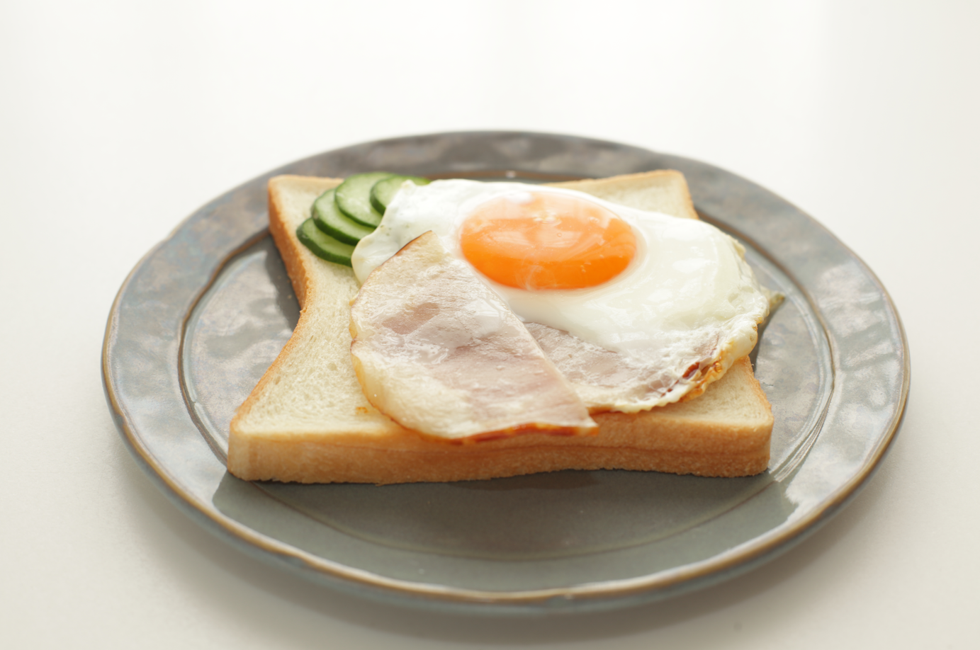 ათქვიფეთ ერთი კვერცხი და მოაყარეთ მარილი გემოვნებით. პურის ერთ ნაჭერს შუაგული მრგვლად ამოაჭერით. ამოავლეთ კვერცხში ორივე ტოსტი და ტაფაზე ცალი მხრიდან შებრაწეთ. პარალელურად, წვრილად დაჭერით ბეკონი და მდნარ ყველთან ერთად პურის დაბრაწულ მხარეებს შორის მოათავსეთ ისე, რომ გულამოჭრილი ნაჭერი ზედა მხარეს მოექცეს. ამოჭრილ ნაწილში ჩაახალეთ მეორე კვერცხი და სენდვიჩი ძალიან ნელ ცეცხლზე, თავსახურიან ტაფაში მოათავსეთ. როგორც კი კვერცხი თეთრ აპკს გაიკეთებს, ცეცხლი გამორთეთ და საუზმე გემრიელად, საყვარელ ნატურალურ წვენთან ერთად მიირთვით.