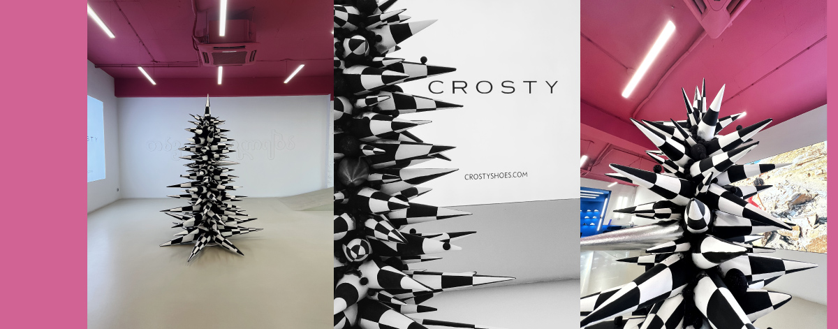 ლაშაო გაბუნია ახალგაზრდა ხელოვანია, რომელმაც CROSTY-ს კონცეპტუალურ მაღაზიაში ახალი ინსტალაცია, პეტრე ოცხელის ინსპირაციით შექმნილი ნაძვის ხე დადგა.