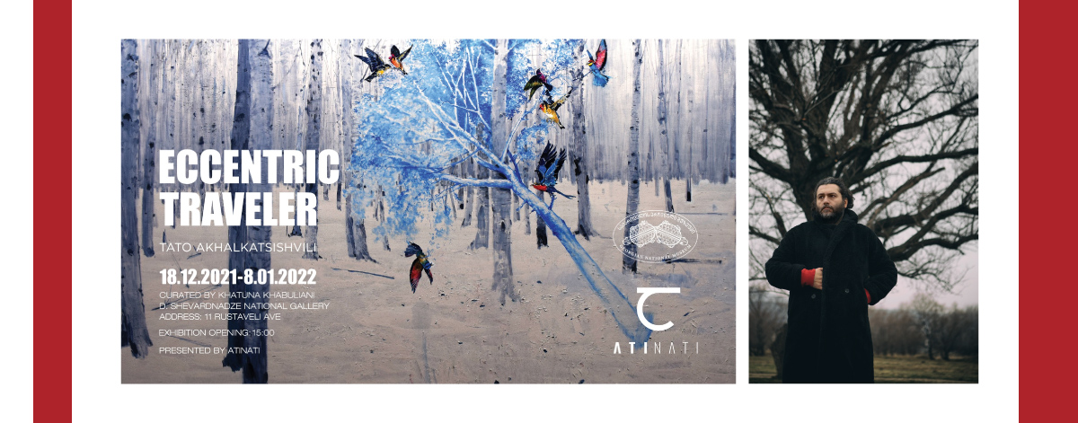 18.12.21-დან 08.01.22-მდე დიმიტრი შევარდნაძის სახელობის ეროვნულ გალერეაში კულტურის ცენტრი ATINATI-ი ტატო ახალკაციშვილის სოლო გამოფენას წარმოადგენს. გამოფენა სახელწოდებით – „ექსცენტრული მოგზაური“ მასშტაბურია და ის მხატვრის 70-მდე ფერწერულ და გრაფიკულ ნამუშევარს აერთიანებს.
