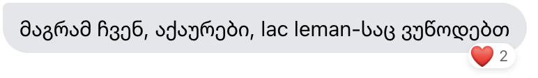 გიორგი: ხო ტბა ესაზღვრება კიდე ლოზანასაც და მონტროსაც. და ამ ტბასაც ჟენევის ტბა ჰქვია.