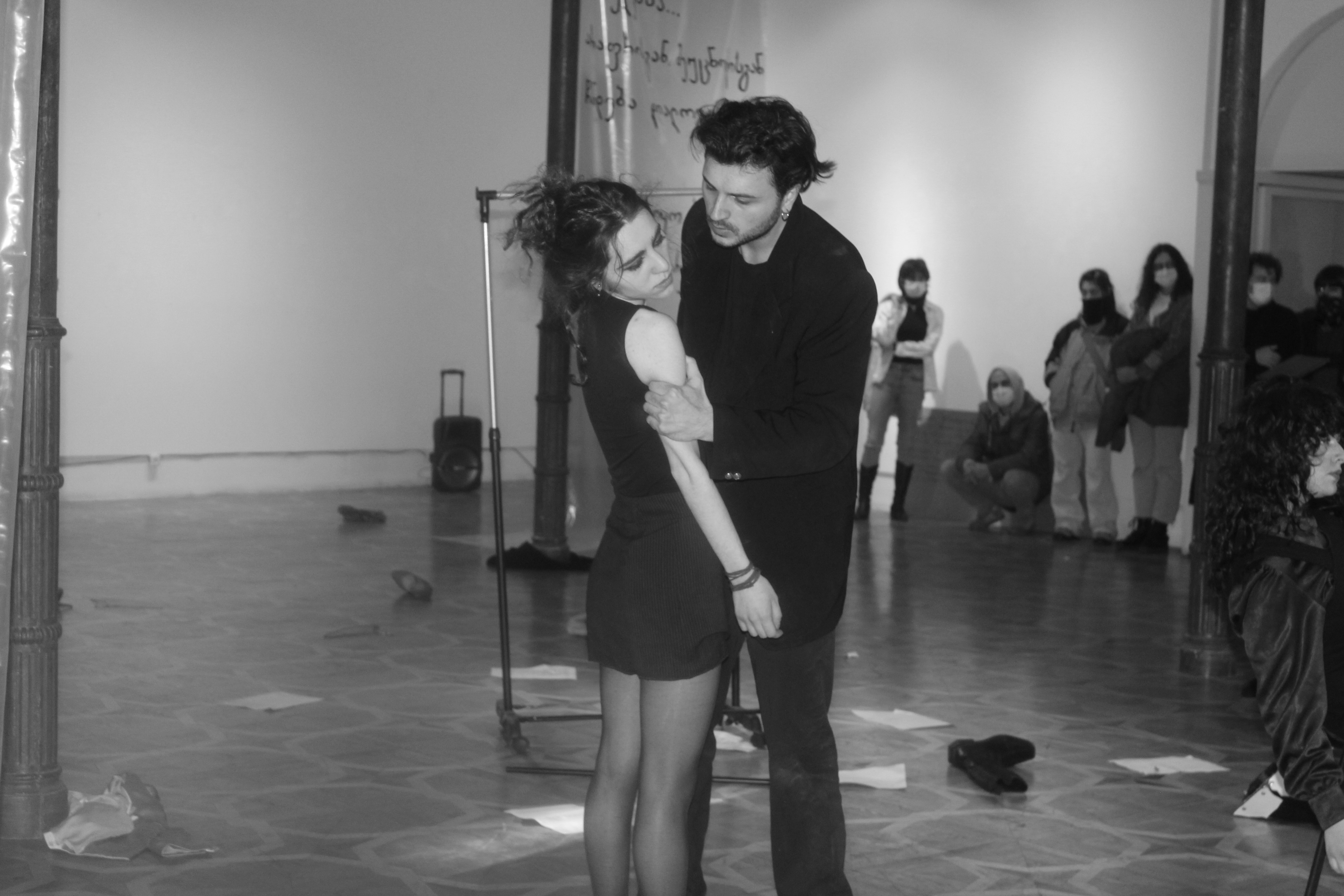 პერფორმერთა ექსპრომტული დიალოგი იბადება ადგილზე და გადამდები ვიბრაციით, ტკივილის, შიშის, შფოთის, მარტოობის ზღვარზე, წინააღმდეგობებს შორის, აღვიძებს ფარულ შთაგონებას, მისწრაფებას, თავისუფალ ძალას – ნებისა და სიყვარულის მინდობას.