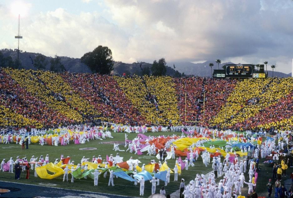 1967 წლის 15 იანვარს Green Bay Packers-მა Kansas City Chiefs-ს 14 :10 მოუგო პირველი ნაციონალური საფეხბურთო ლიგის (NFL) თამაშზე, რომელსაც ახლა სუპერ-ბოულით (Super Bowl) მოიხსენიებენ. ნახევარ ტაიმის შოუს ექსტრავაგანზა ამერიკული ფეხბურთის ყოველწლიურ ტრადიციად იქცა, რომელიც ფუნდამენტურ ლინკს წარმოადგენს პოპულარულ კულტურასთან და ხშირად თამაშზე დიდი გამოხმაურებაც კი მოსდევს ხოლმე, თუმცა ყოველთვის ასე არ იყო. 60-იან წლებში, სუპერ-ბოულმა გადაწყვიტა კოლეჯის ფეხბურთისთვის მიებაძა, რომელიც ადგილობრივი მარშის შემსრულებლებით უზრუნველყოფდა აუდიტორიის გართობას შესვენების დროს. სუპერ-ბოულმა შემდეგ უფრო ორიგინალური მიდგომა აირჩია, ეს ნაწილობრივ იმიტომ მოხდა, რომ საინაუგურაციო თამაში ჯერ კიდევ არ ითვლებოდა ისეთ მნიშვნელოვან მოვლენად, როგორც ახლა.
