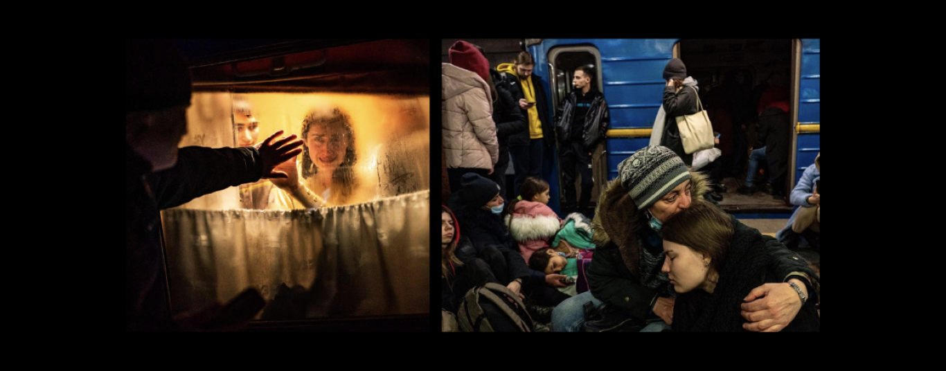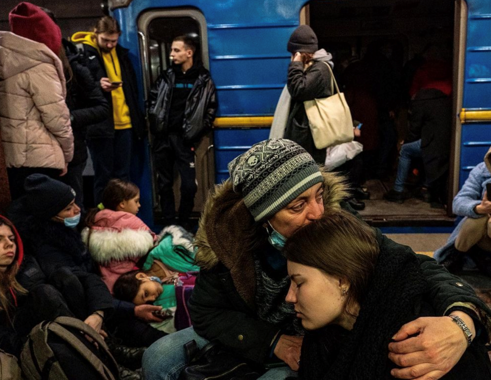 ხარკოვში ასობით ადამიანი, მათ შორის ბევრი ქალი და ბავშვი, რუსული დაბომბვების გამო თავს აფარებდნენ მეტროსადგურს თავიანთი ნივთებითა და შინაური ცხოველებით.