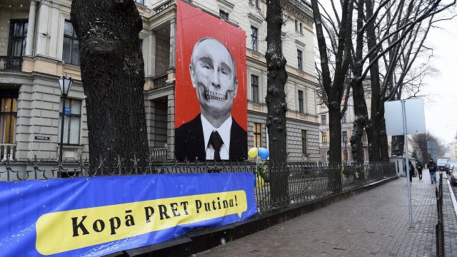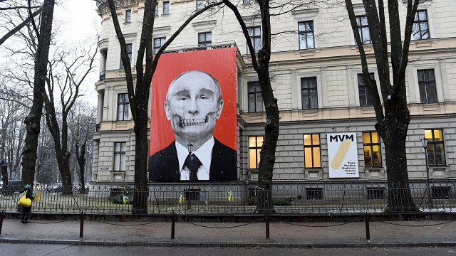 რუსეთის პრეზიდენტ ვლადიმერ პუტინის სტილიზებული გამოსახულება ლატვიის ერთ-ერთი ყველაზე პოპულარული – მედიცინის ისტორიის მუზეუმის ფასადს ამშვენებს და ის ზუსტად რუსეთის საელჩოს პირისიპირაა განთავსებული.