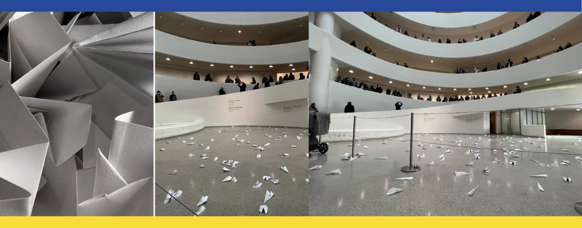 პერფორმანსულ ხელოვნებას არტისტები ხშირად სოციალურ საკითხებზე კომენტირების საშუალებად იყენებენ. უკრაინაში მიმდინარე ომის საპასუხოდ, ნიუიორკელი მხატვრების ჯგუფმა თავიანთი პოზიცია ქალაქის ერთ-ერთ ყველაზე ცნობილ მუზეუმში გამოხატა. შაბათს, 5 მარტს, მათ გუგენჰაიმში 350 ქაღალდის თვითმფრინავი მუზეუმის გუმბათიდან გაუშვეს, რითაც უკრაინის თავზე საჰაერო სივრცის ჩაკეტვას დაუჭირეს მხარი.