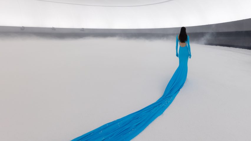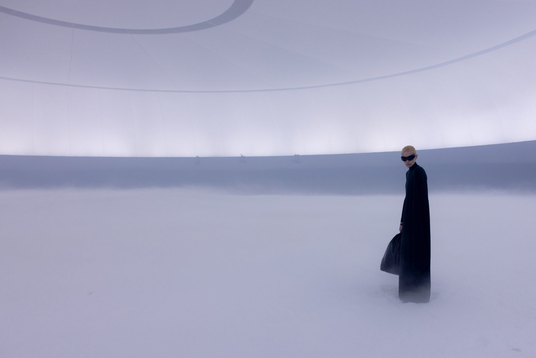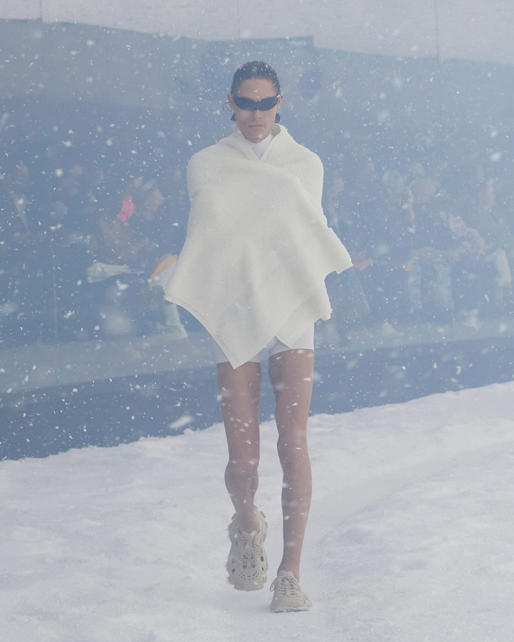 Balenciaga-ს შოუ თავდაპირველად ჩაფიქრებული იყო, როგორც კლიმატის ცვლილებებთან დაკავშირებული კრიზისის გამოძახილი. ამიტომაც სცენოგრაფია – როგორც ცნობილი სუვენირის – Snow globe-ის (თოვლიანი გლობუსის) იმიტაცია, ხელოვნური ქარბუქითა და ციფრული თოვლით Balenciaga-ს არქიტექტორების გუნდმა – სტუდია Sub-მა შექმნა, იმისათვის, რომ ეჩვენებინა მომავლის რეალობა – „მომავალი, როცა ნამდვილ თოვლსა და ზამთარს – სიმულაციური თოვლი ჩაანაცვლებს“.