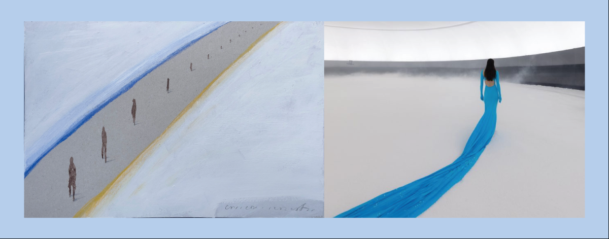 ერთმანეთისგან სრულად განსხვავებული მედიების, ჟანრისა თუ მასშტაბების მიუხედავად, საბოლოო ჯამში დაგვრჩა ორი იდენტური ვიზუალი – სითეთრე ლურჯი და ყვითელი შტრიხებით/ლაქებით. რა მოვლენაა ეს – შემთხვევითი დამთხვევა თუ ქვეცნობიერის მიერ მოვლენის ერთნაირად აღქმის მომენტი, ან სინესთეზიის სიმპტომი, როცა მოვლენებს თუ საგნებს მგრძნობიარე ადამიანების ტვინის სენსორები გარკვეულ ფერებში ხედავენ? მოდით, ლოგიკას გავყვეთ: