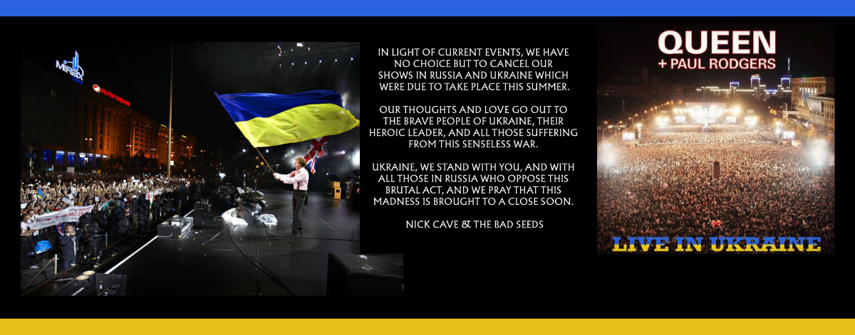 ჯგუფმა Queen + Paul Rodgers-მა უკრაინის ფონდში თანხების მოსაზიდად „იუტუბზე“ მათი 2008 წელს ხარკოვში, თავისუფლების მოედანზე 350 000 მაყურებლის წინაშე ჩატარებული ორსაათიანი კონცერტი განათავსეს და განმარტებაში დაწერეს, რომ უკრაინისთვის ამ ძნელბედობის ჟამს უბრუნდებიან იმ ბედნიერ წუთებს, როდესაც მათ ხარკოვში კონცერტი ჰქონდათ და ამის ახლა გამოქვეყნება მარტო უბრალო ერთობა კი არა, საერთო უბედურების წინააღმდეგ გაერთიანებაცაა.