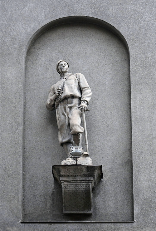 აღსანიშნავია, რომ შენობის ერთ-ერთი ქანდაკება – „ალპინისტი“, რომელიც შოთა მიქატაძემ შეასრულა, გივი გაბლიანის სახისა და აღნაგობის მიხედვით გამოძერწა. გივი გაბლიანი ქართველი სამხედრო მოღვაწე, ექიმი და მემუარისტი იყო. მამა 1937 წლის რეპრესიებს ემსხვერპლა, თავად კი მეორე მსოფლიო ომში ტყვედ ჩავარდა, იბრძოდა ვერმახტის ქართულ ლეგიონში. მიიღო გერმანიის არმიის ობერლეიტენანტის წოდება და 1943 წ. დაინიშნა აბვერის ქართული ბატალიონის, „ტამარა-II“-ის მეთაურად. მისი დახმარებით სიცოცხლე შეუნარჩუნდა არაერთ საბჭოთა ქართველ ჯარისკაცს. გივი გაბლიანი ომის შემდეგ გადასახლდა ამერიკის შეერთებული შტატებში – ნიუ-ჯერსიში, სადაც 1987 წლამდე ექიმად მუშაობდა.