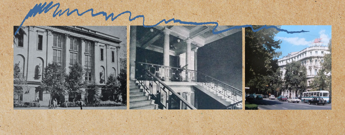 კინოთეატრ „რუსთაველის“ ფასადი, გაფორმებულია მოქანდაკე თოფურიძის მიერ შესრულებული ფიგურებით“. – წერდა გაზეთი „კომუნისტი“ 1939 წელს კინოთეატრის გახსნაზე.