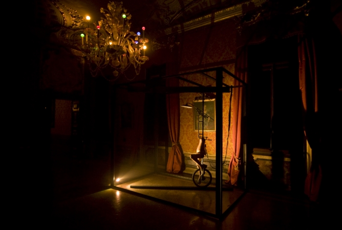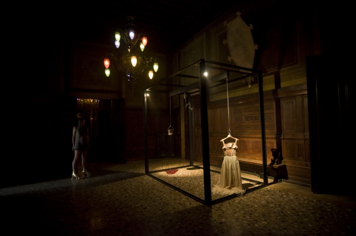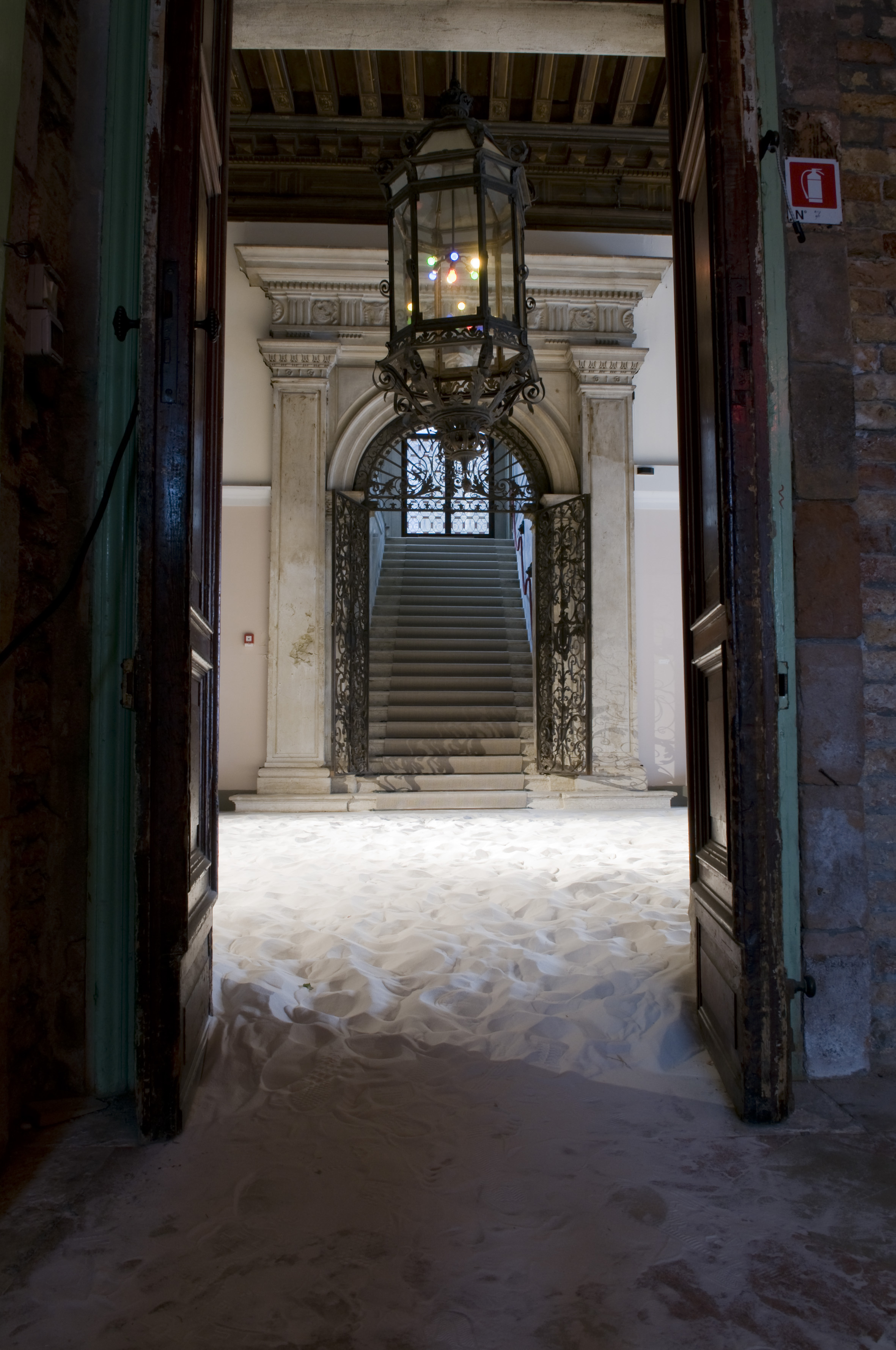 2009 წლის ბიენალე და უკრაინული პავილიონი გამახსენდა. პალაცო პაპადოპოლის მომნუსხველ სივრცეში ილია ჩიჩკანის და მიჰარა იასუჰიროს ერთობლივი ნამუშევარი – ტონობით ქვიშით დაფარული სართული და მანტრა, რომელიც ექოსავით ისმოდა მისტიკური პალაცოს დარბაზებში. მალიმალ, სასახლის მოჩვენებასავით ჩაგვიქროლებდა ქალი “როლიკებზე”. ისე სწრაფად, რომ ნახევრად ბნელ დარბაზში მხოლოდ მის გრძელ თმას თუ მოვკრავდით თვალს…