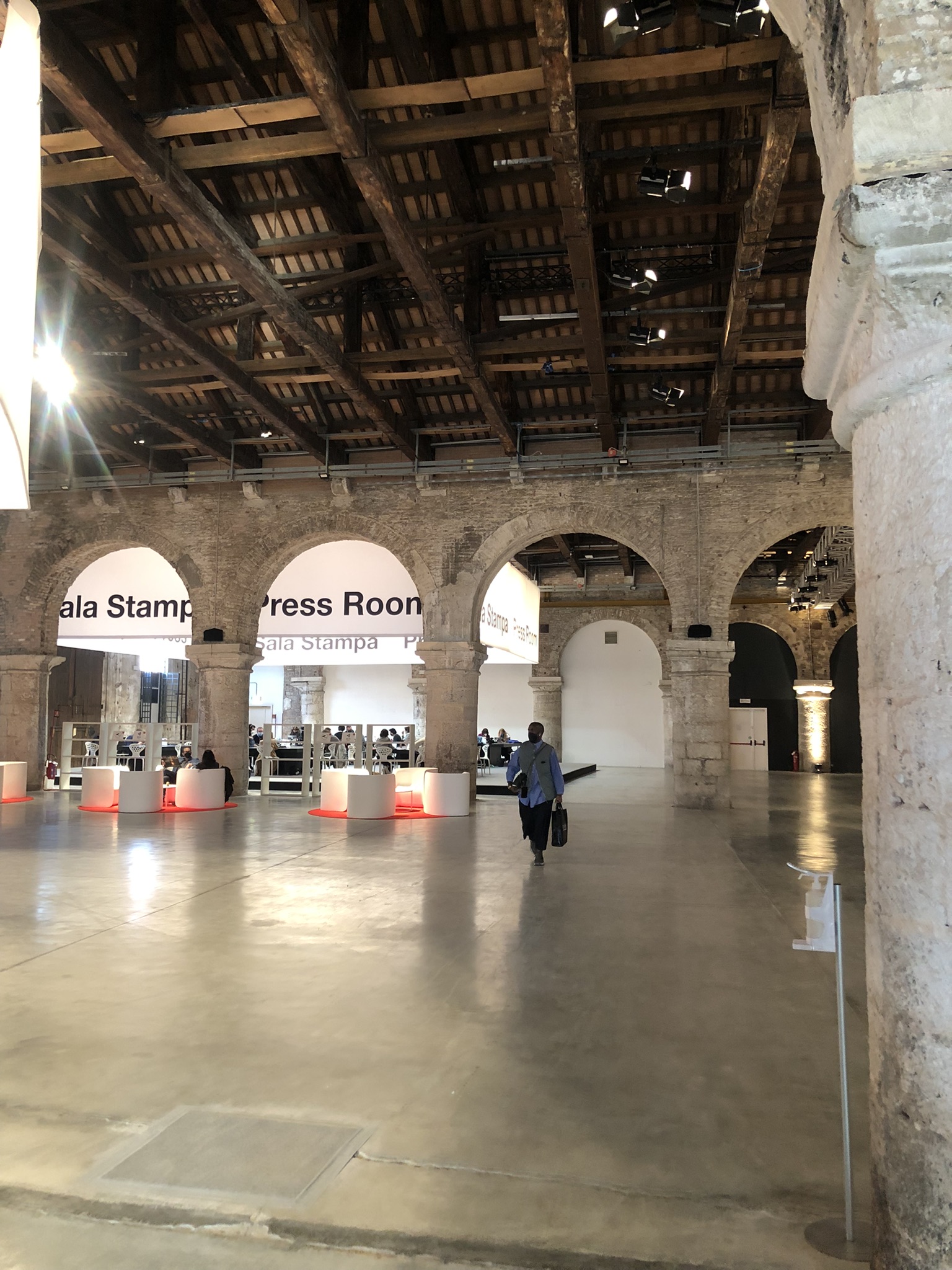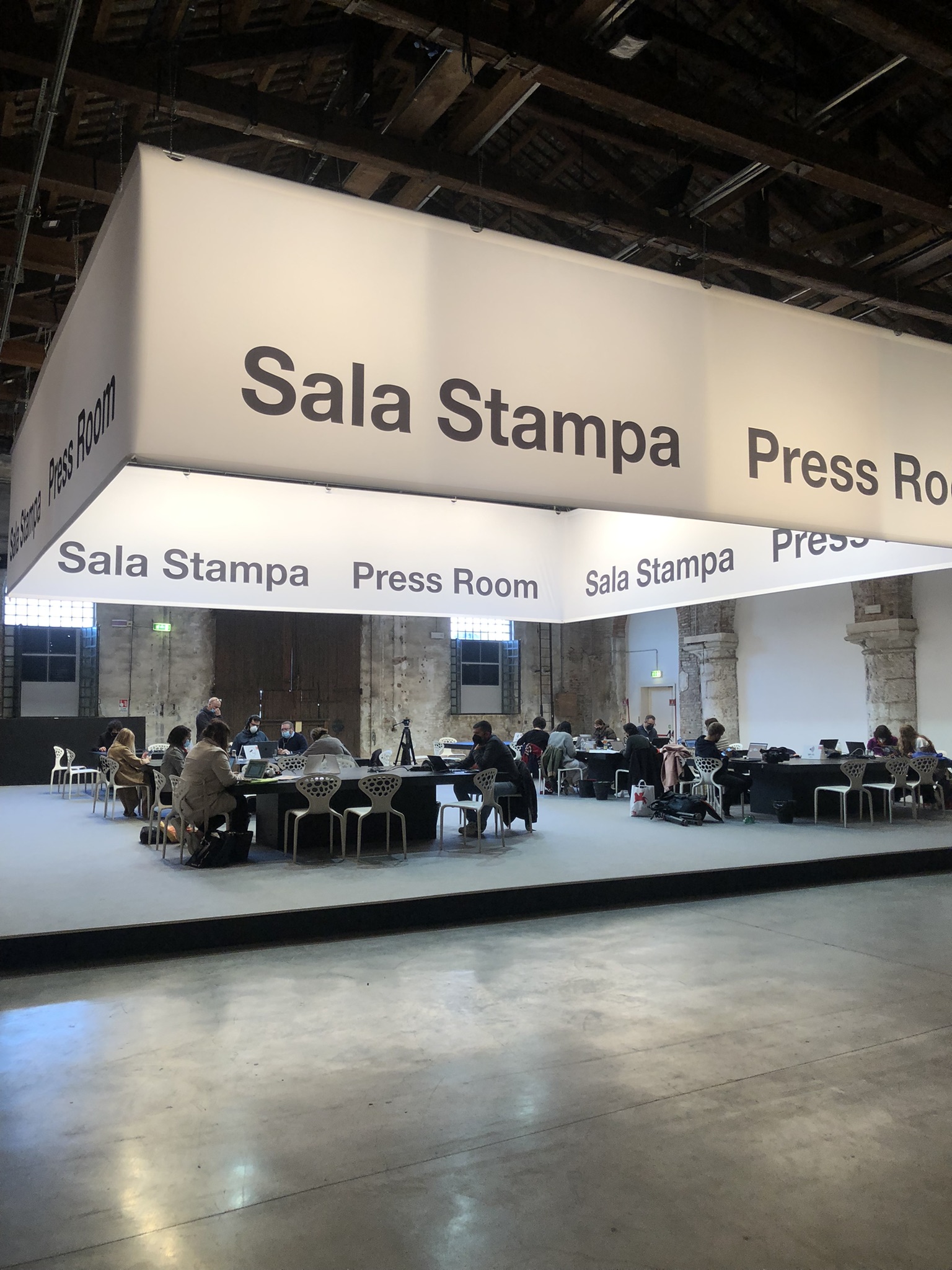ეს ნაწილი კი ჩემს ძვირფას AT.ge -ს ეძღვნება. :* პრესის ოთახი არსენალეზე. ათობით პავილიონისა და ათასობით ნამუშევრის ნახვის შემდეგ ეს წყნარი სივრცე შემოგხვდება არსენალეზე, სადაც მსოფლიოს სხვადასხვა კუთხიდან ჩამოსული ჟურნალისტები მუშაობენ და აშუქებენ ვენეციის ბიენალეს მიმდინარეობას. მახსოვს, 2017 წელს, გერმანიის პავილიონმა რომ ოქროს ლომი მიიღო (ან იმჰოფის საოცარი პერფორმანსი – „ფაუსტი“ იყო წარმოდგენილი) და ამავე დროს ფრანც ვალტერმა, როგორც საუკეთესო არტისტმა, გერმანულ ტელეარხებზე ახალი ამბები სწორედ ამ ინფორმაციით იწყებოდა. არა მერკელით, არამედ ვენეციიდან, ამ ოთახიდან „გადაგორებული“ სიახლეებით.