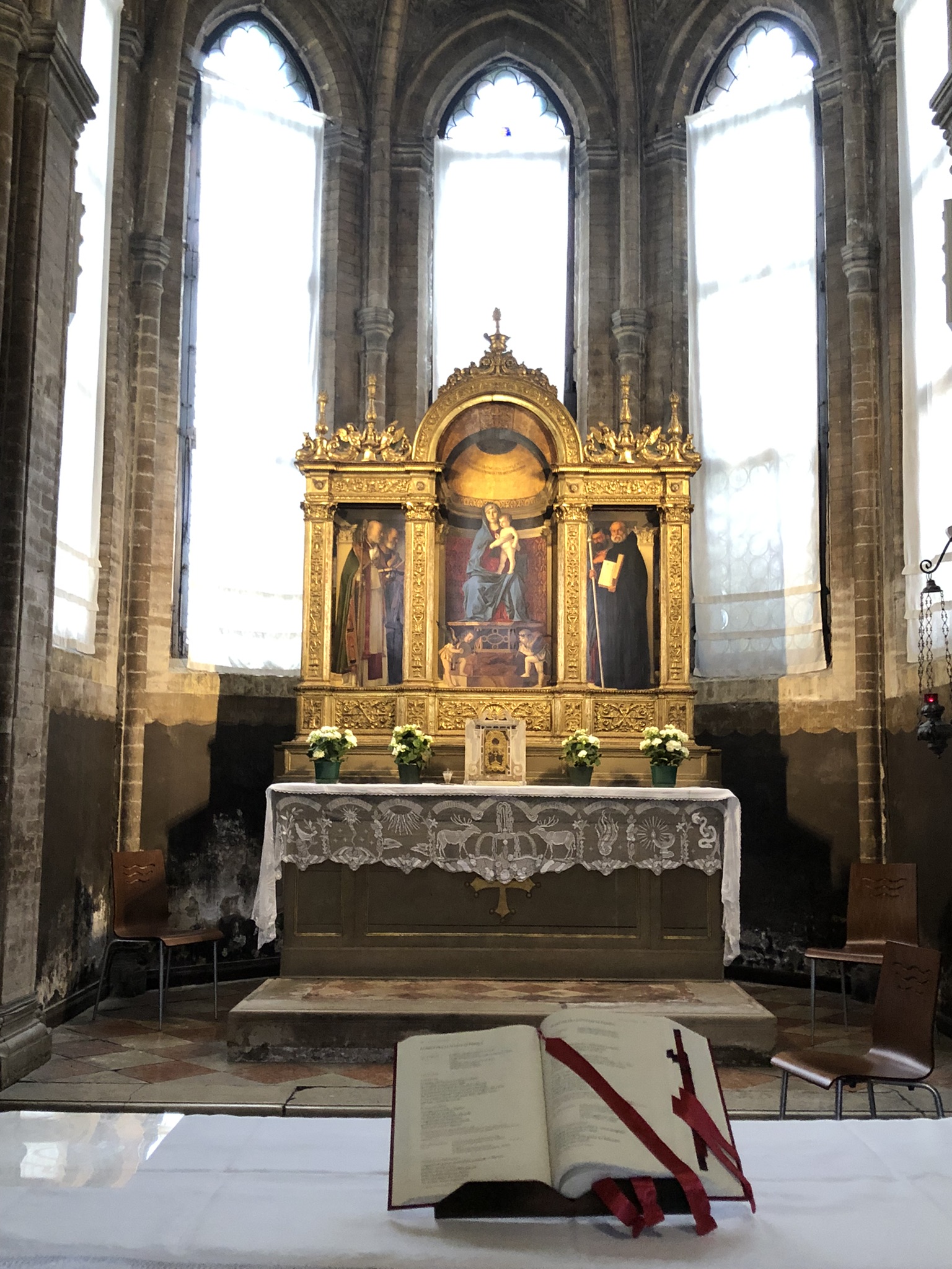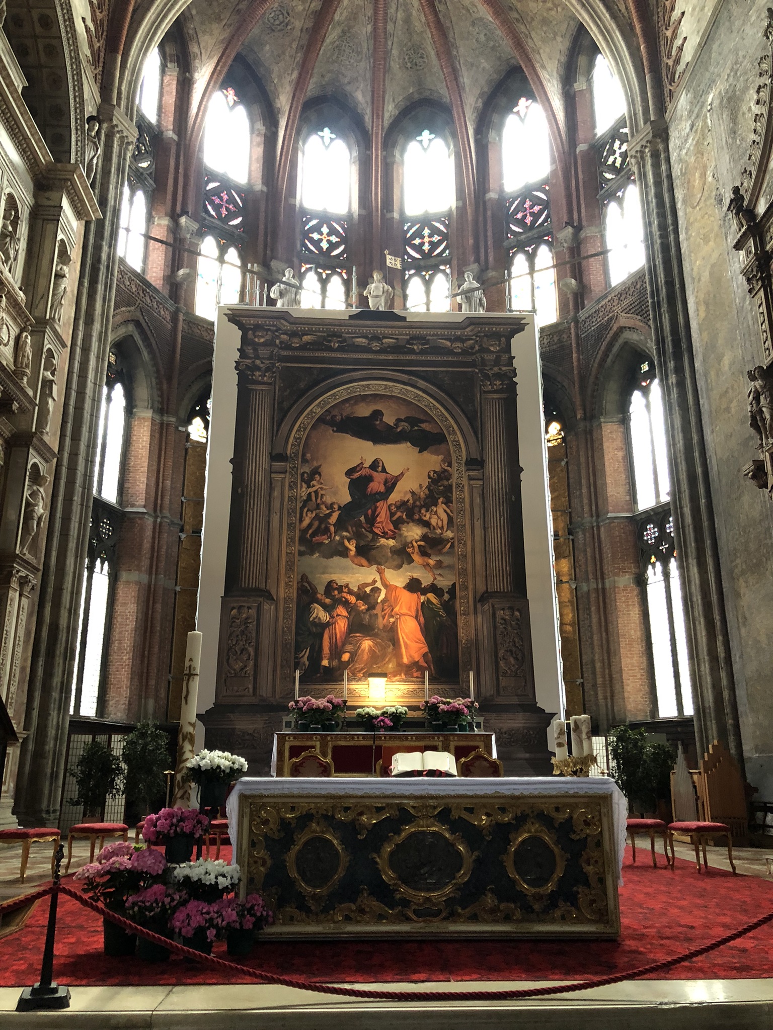 Basilica di Santa Maria Gloriosa dei Frari, რომელსაც ვენეციაში უბრალოდ ფრარის ეძახიან, აგურით ნაშენი გოთური სტილის ბაზილიკაა (1250-1338), ერთ-ერთი დაუვიწყარი ადგილი ვენეციაში. აქ მოსულს ტიციანის Assumptio Beatæ Mariæ Virginis – ღვთისმშობლის ამაღლება, იგივე ასუნტა (Assunta – იტ. ამაღლებული) ანდამატივით მიგიზიდავთ. საკურთხევლის იკონოგრაფიის თვალსაზრისით საეტაპო მნიშვნელობის ნამუშევარი, რომელიც მსოფლმხედველობით ძვრას ასახავს, რელიგიური ნამუშევრის დოგმების მიღმა გადის და მარიამის მიწიერ, ცოცხალ, დინამიკურ სხეულს წარმოადგენს, რომელიც წითლად ელავს საკურთხეველში და დიდი ხნით გატყვევებს. არადა იქვეა ბელინის ღვთისმშობელი ყრმით, დონატელოს იოანე, მაგრამ ასუნტას ვერ მოწყდები.