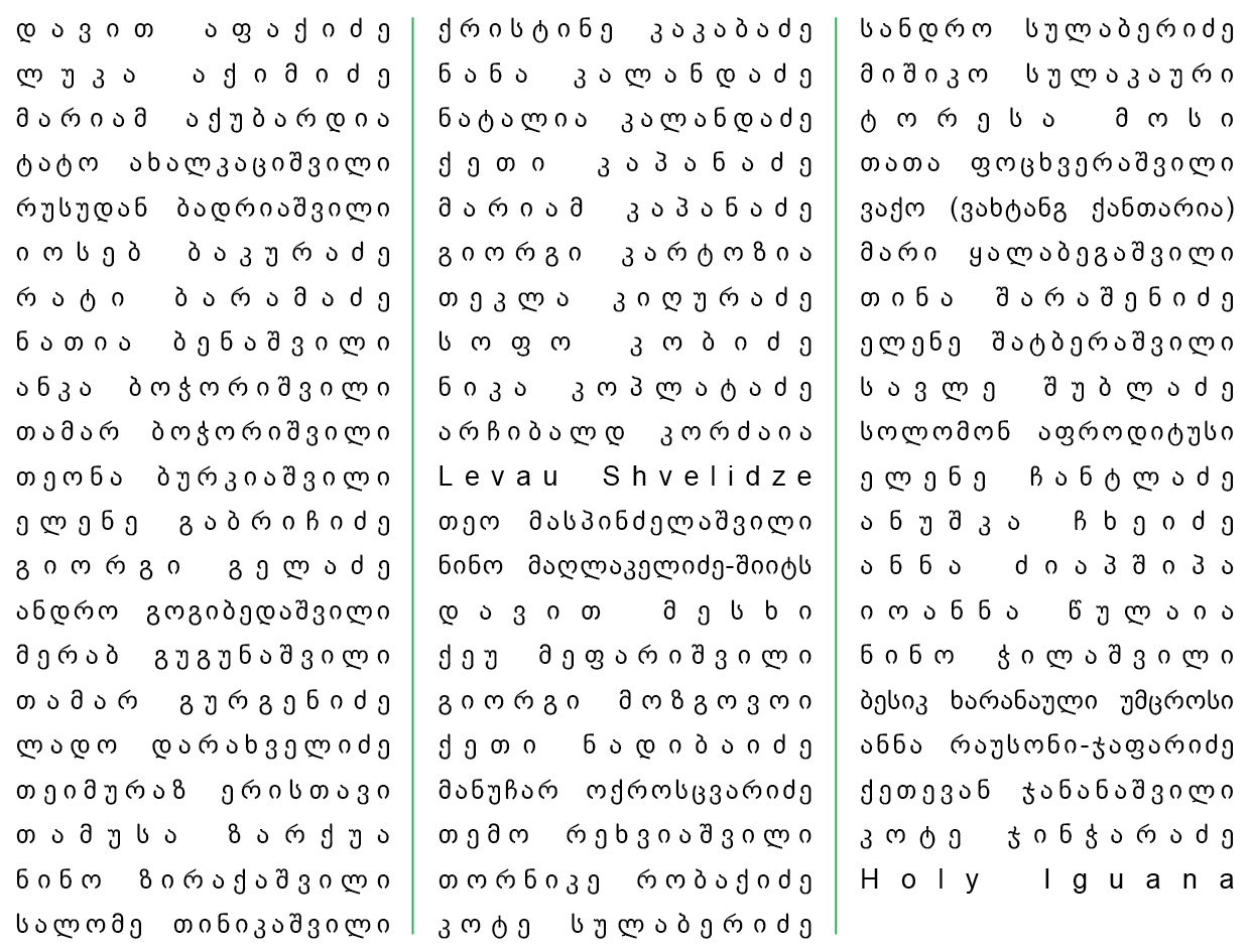 გაზეთის ავტორები არიან მარიამ კუპრაშვილი, ელენე გაბრიჩიძე და სალომე სორდია, ტექსტის ინგლისური თარგმანი კი გურამ ღონღაძეს ეკუთვნის.