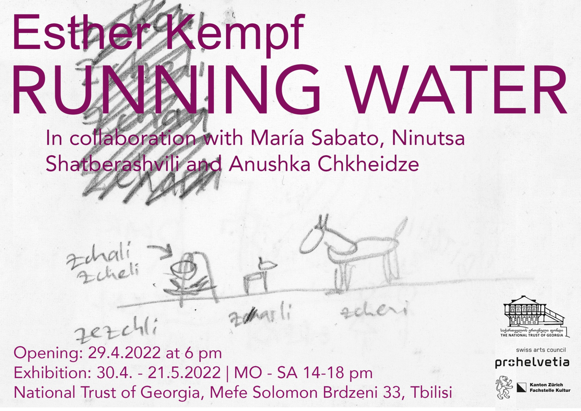 29 აპრილს ესთერ კემფის გამოფენა “მორბის წყალი” საქართველოს ეროვნულ ფონდში გაიხსნება. შვეიცარიელმა ხელოვანმა 2021 წლის სექტემბერში თუშეთის მთებში იმოგზაურა 2 ადამიანთან და 5 ცხენთან ერთად. ამ მოგზაურობის მიზანი ლიკოპოდიუმის, პრეისტორიული ხავსის მოძიება იყო. სწორედ ამ მოგზაურობის დროს შექმნილი ნამუშევრები იქნება გამოფენაზე წარმოდგენილი. გამოფენის ძირითადი თემა რესურსებია და წარმოაჩენს მოძრაობასა და უძრაობას შორის არსებულ დაძაბულობას. გამოფენა გაიხსნება ნინუცა შატბერაშვილის სუფრა პერფორმანსის და ანუშკა ჩხეიძის მუსიკის თანხლებით. გამოფენის კურატორია ლალი პერტენავა.