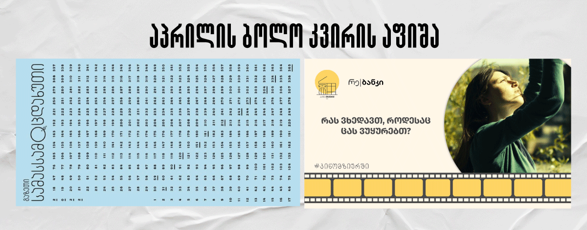 წარმოგიდგენთ აპრილის ბოლო კვირის აფიშას – სპექტაკლები, გამოფენები, პრემიერები და სახელოვნებო ღონისძიებები თბილისში, რომლებიც არ უნდა გამოგრჩეთ, ნახეთ ჩვენს სტატიაში.