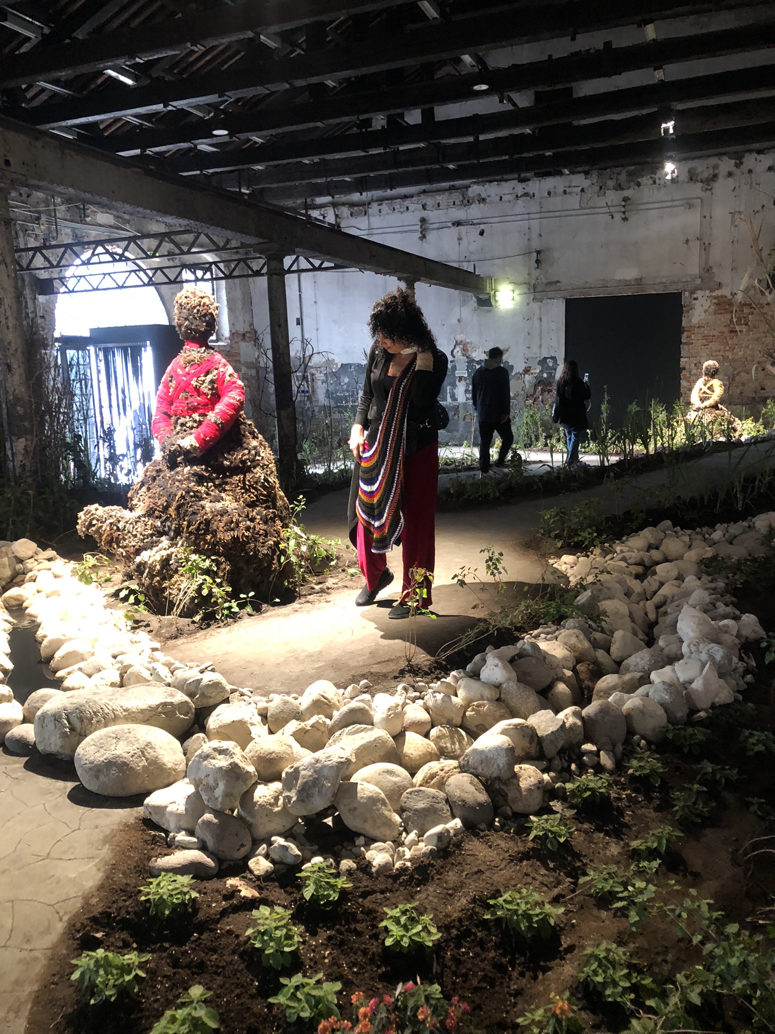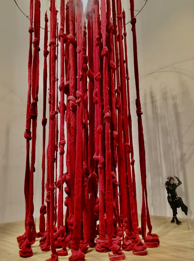 დამეთანხმებით, რომ მის რბილ სკულპტურებში ვინც ერთხელ მაინც აღმოჩენილა, არასოდეს დაავიწყდება ეს შეგრძნება. სწორედ ვენეციაში გამგზავრებამდე თეით მოდერნში ვნახე მისი შეკიდული უზარმაზარი იმერსიული ინსტალაცია, თავის დროზე, დოკუმენტა 14-ისთვის შექმნილი ხასხასა წითელი, რბილი საშო – “Quipu Womb“. ვიკუნას Quipuპოემა, რომელიც თეით მუზეუმმა შეიძინა, კავშირების, მითოლოგიის, მენსტრუალური სიმბოლიზმის განსახიერებაა და მისი სახელწოდება Quipu, ფერადი ქსოვილის ნასკვების საშულებით ანდების მაცხოვრებლების კომუნიკაციის, ტექსტების ჩაწერის უძველეს მეთოდს უკავშირდება.