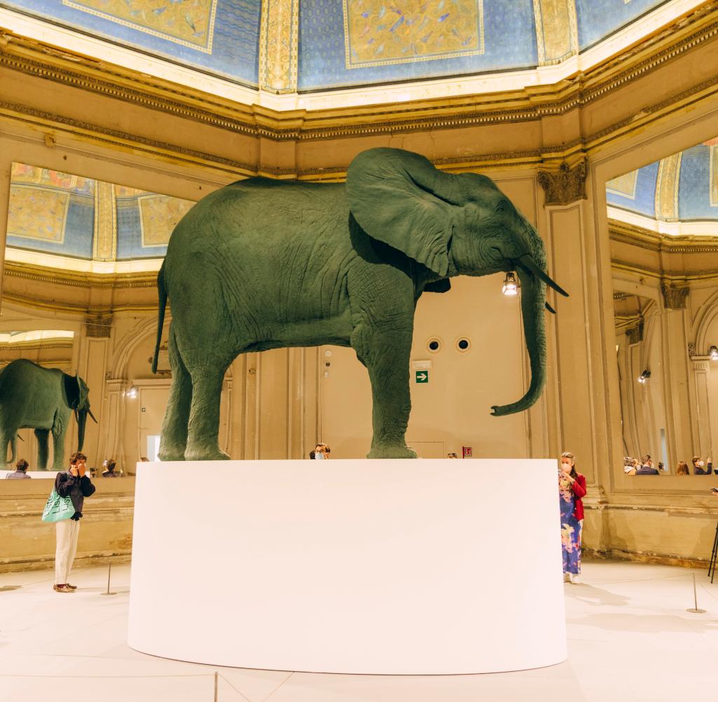 მთავარი გამოფენა ჟარდინიში, სწორედ კატარინა ფრიჩის სარკეებით გარშემორტყმული სპილოთი იწყებოდა.
