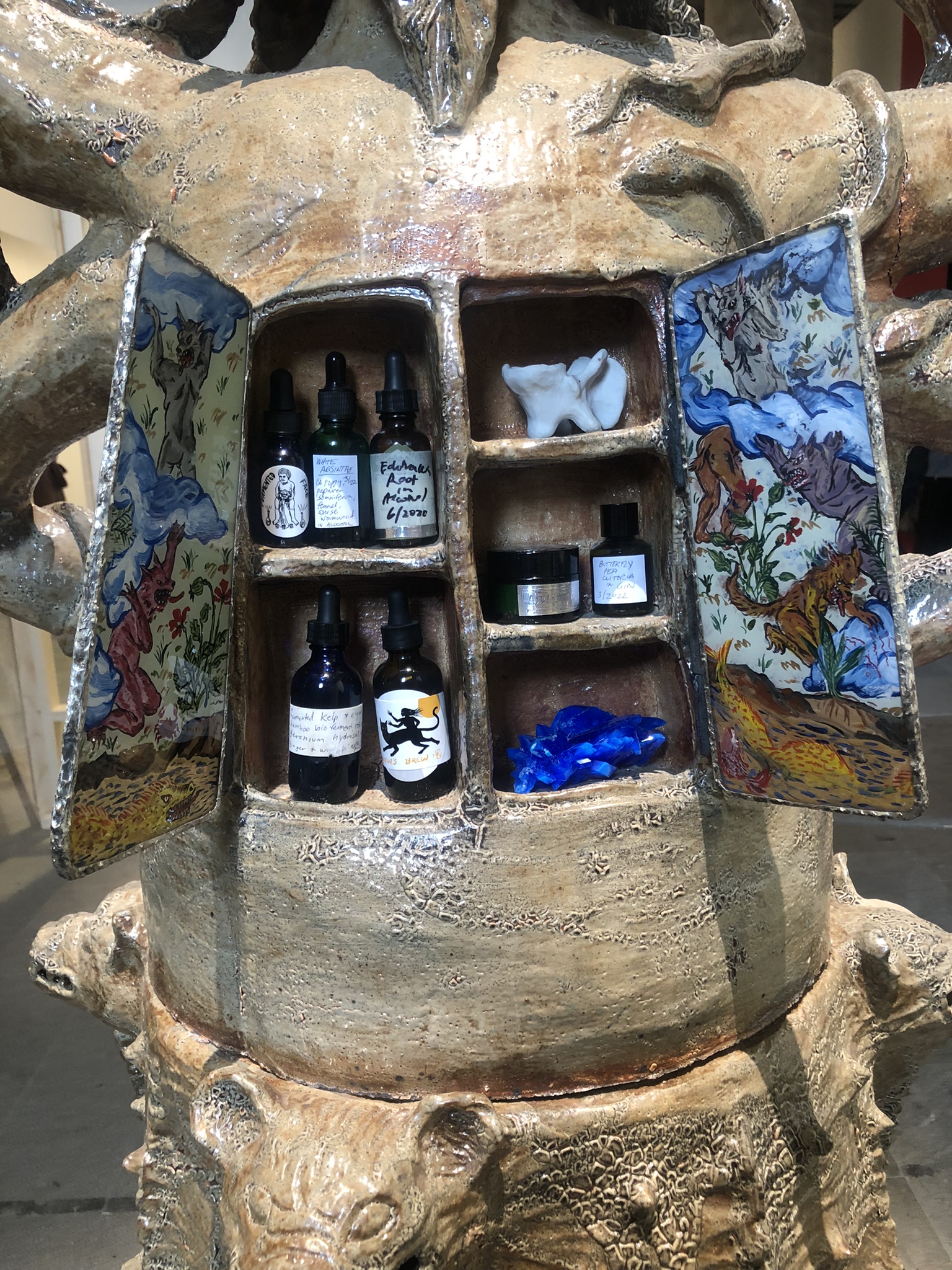 სიმონ ლის (Simone Leigh), რომელიც წელს ამერიკის შეერთებული შტატების ეროვნულ პავილიონსაც წარმოადგენდა. უმაღლესი ჯილდო მას გადაეცა „საგულდაგულოდ დამუშავებული, ვირტუოზულად რეალიზებული და მძლავრი დამაჯერებელი მონუმენტური სკულპტურისთვის“, რომელიც არსენალეს გამოფენის გამხსნელი ნამუშევარი იყო არა მხოლოდ ფიზიკური, არამედ მეტაფორული მნიშვნელობით. შავკანიანი ქალის უზარმაზარი სხეული არქიტექტურულ ფორმასთან – ტრადიციულ სახლთან იყო ერთგვარად გაიგივებული. მაშინ, როდესაც ყველგან თვალები დაგყვებოდა, თანამედროვე ხელოვნების ამბავი და სიურრეალისტური ტენდენციების ხელხალი გაჩენა, სწორედ ამ უთვალებო „აგურის სახლის“ (ნამუშევრის სახელწოდება) გავლით იწყებოდა.