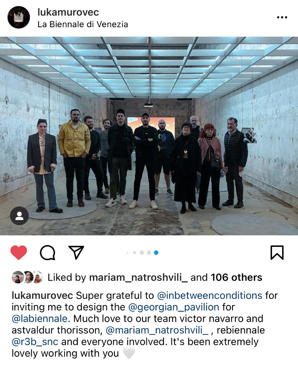 კოლაჟი საქართველოს პავილიონის სივრცის დიზაინერის, ლუკა მუროვეცის ფოტოებისგან შევადგინე. ალბათ პროსეკოს გამო ჩემმა ფოტოების უმეტესობამ არ ივარგა და დღიურისთვის დასამატებლად რამოდენიმე ლუკას ინსტაგრამიდან გამოვიტაცე.