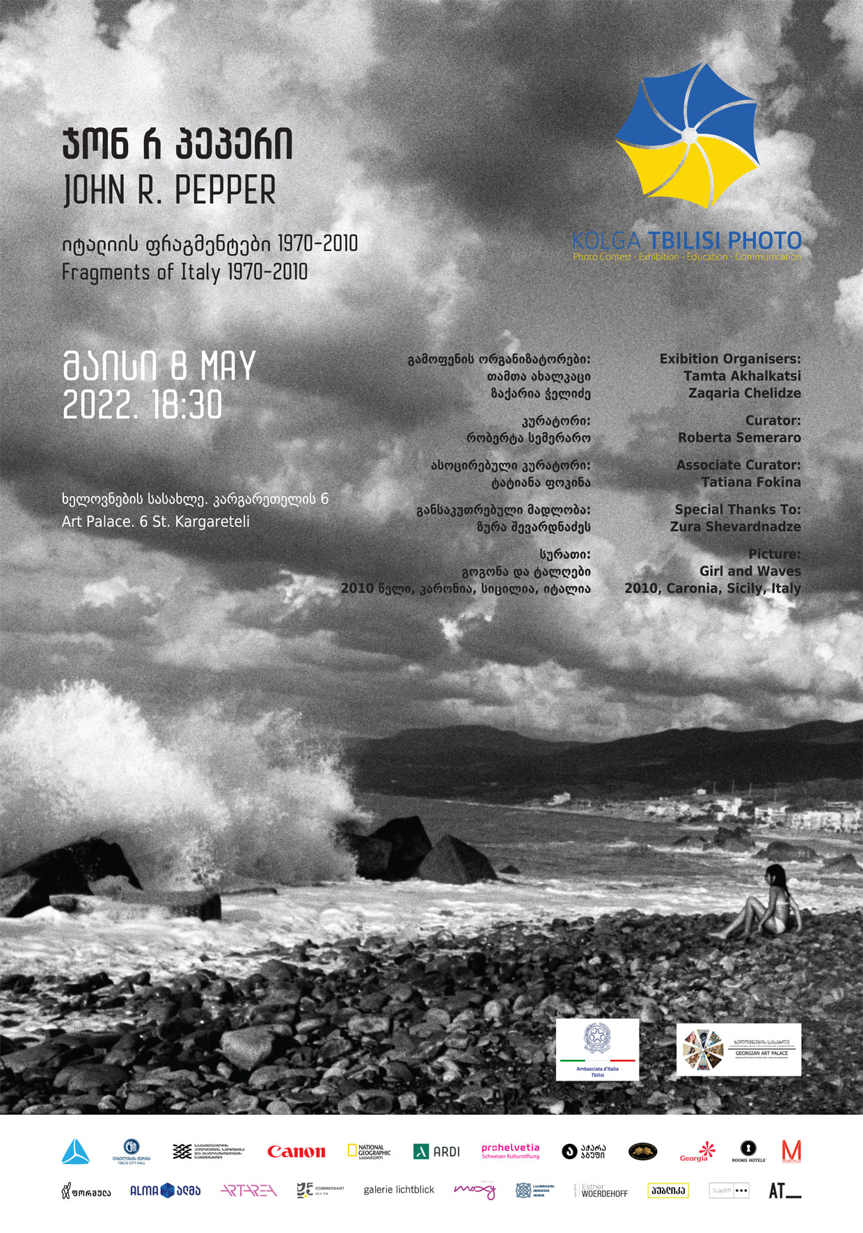 8 მაისს, 18.30 სთ-ზე ხელოვნების სასახლეში იტალიის საელჩოს დახმარებით გაიხსნება იტალიელ-ამერიკელი ფოტოგრაფის, ჯონ რენდოლფ პეპერის გამოფენა “იტალიის ფრაგმენტები 1970-2010”. მისამართი: კარგარეთელის 6. გამოფენა გასტანს 14 მაისამდე.