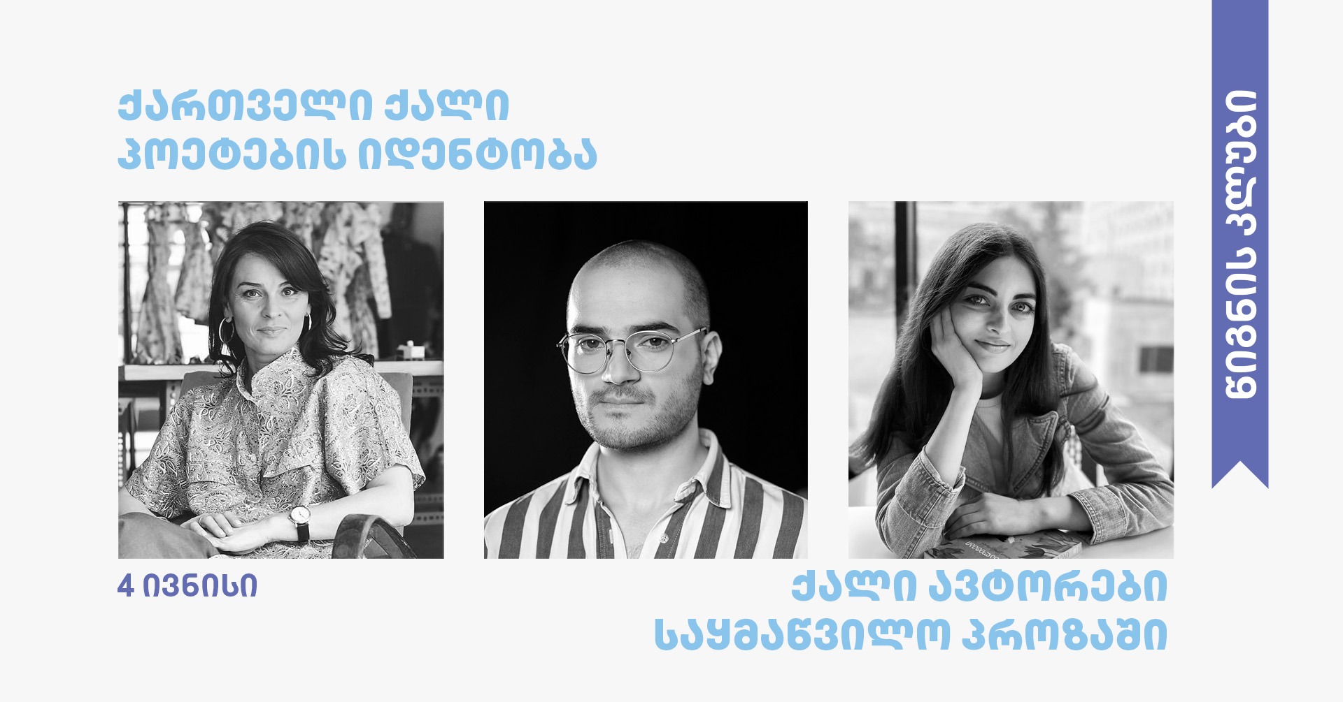 4 ივნისს, 14:00 საათზე გურამ ღონღაძე და ნინო კასრაძე შეხვდებიან მკითხველს თემაზე – ქართველი პოეტი ქალების იდენტობა.