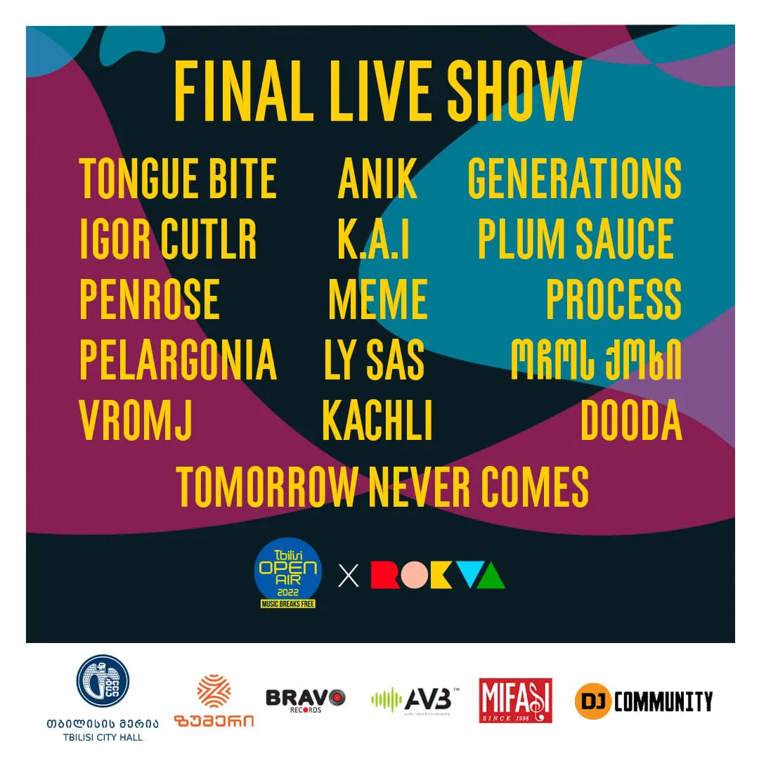 10 ივნისს, 20:00 საათზე, Tbilisi Newcomers 2022-ის დასკვნითი, ფინალური ლაივ შოუ, ელექტროვერკში გაიმართება. ღონისძიება თბილისის მერიის მხარდაჭერით ტარდება.