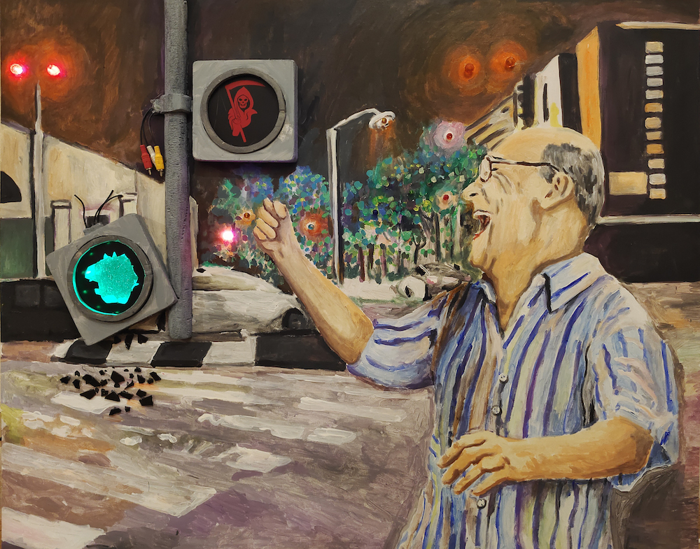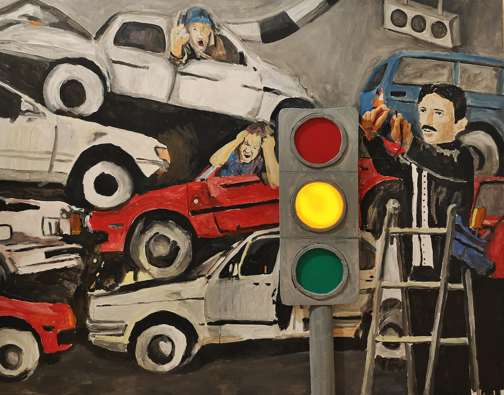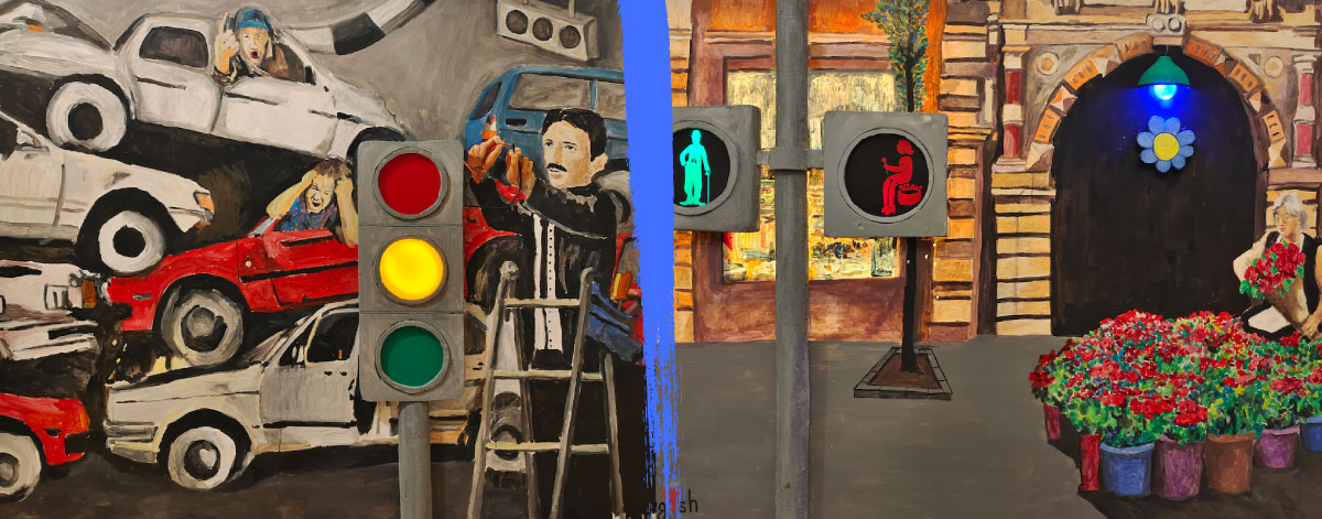 სერიის შინაარსი კი, როგორც ავტორს სჩვევია, სატირულ-იუმორისტულია, აქ ნახავთ ტესლას, რომელიც უიმედოდ ცდილობს მწყობრიდან გამოსული შუქნიშნების შეკეთებას. თვითონ შუქნიშნები კი სიმბოლურად სისტემური წესრიგის გაგოშასეული ინტერპრეტაციაა, რამდენადაც არსებობს წესები, რომლებსაც ვემორჩილებით, არ ვემორჩილებით ან თავადვე ვქმნით. სწორედ ეს სამი არჩევანი ხდება გამოფენაზე მოსული დამთვალიერებლისთვისაც საინტერესო, რამდენადაც მნახველი აქ თვითონ ცდილობს ინტერაქციის გზით იმ წესების დარეგულირებას, რომელიც ავტორმა გვიკარნახა. როგორც გამოფენის კონცეფციაშია ნათქვამი შუქნიშნები მმართველობის სისტემური მოდელია, ისინი გარკვეული ქმედების ნებას გვართმევენ, გვიკრძალავენ ან სულაც უპასუხოდ გვტოვებენ.